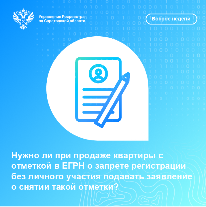 Нужно ли при продаже квартиры с отметкой ЕГРН о запрете регистрации без личного участия подавать заявление о снятии такой отметки?
