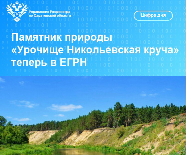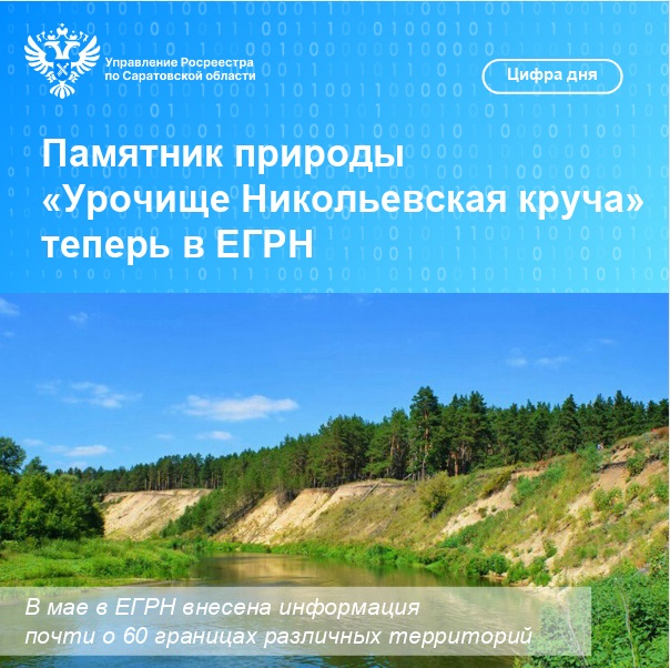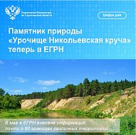 В мае ЕГРН пополнился сведениями о границах особо охраняемой природной территории регионального значения – памятника природы «Урочища Никольевская круча». Это означает, что теперь границы этой уникальной природной территории чётко определены и находятся под государственной охраной. Любая деятельность, способная нанести вред этому памятнику природы, будет пресекаться.