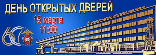 15 марта 2025 г. в 11.00 Волгоградская академия МВД России проводит День открытых дверей по адресу: г. Волгоград, ул. Историческая, 130
