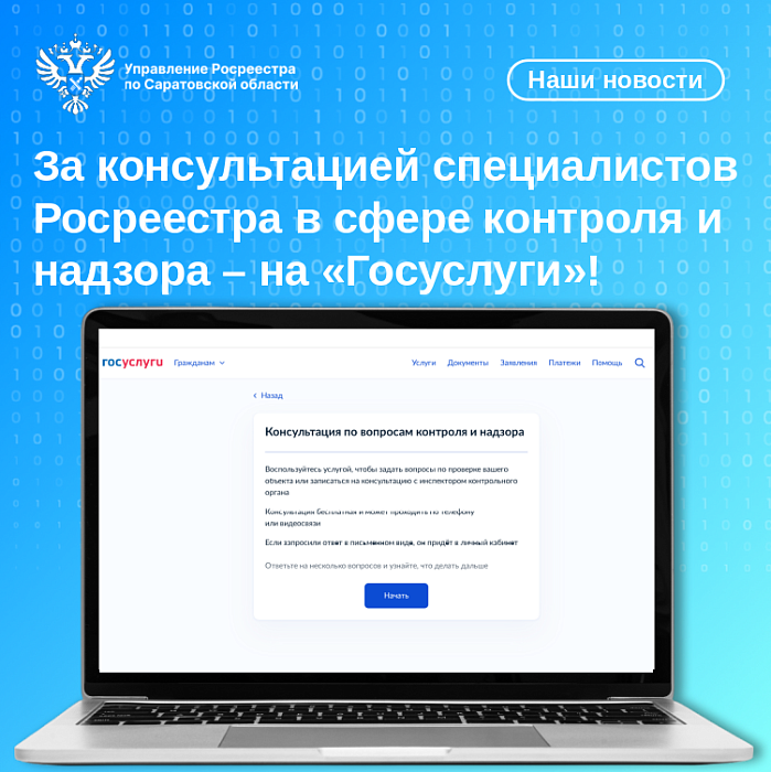 За консультацией специалистов Росреестра в сфере контроля и надзора – на «Госуслуги»!