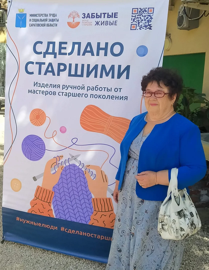 Валентина Миронова, «серебряный» волонтер, получатель услуг центра социального обслуживания населения Ершовского района, приняла участие в фестивале с презентацией своих творческих работ. Программа была очень насыщенной: приветственное чаепитие, вручение дипломов участникам, лекция о самозанятости и самореализации старшего поколения в живом формате, свободное общение и неформальный нетворкинг, ярмарка мастеров, музыкальные номера.
