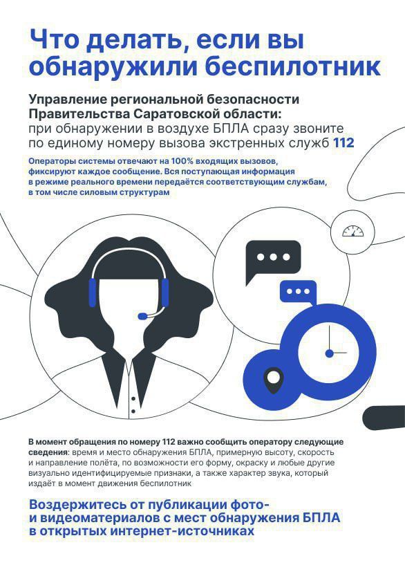 При обнаружении в воздухе БПЛА необходимо сразу звонить по единому номеру вызова экстренных служб 112.