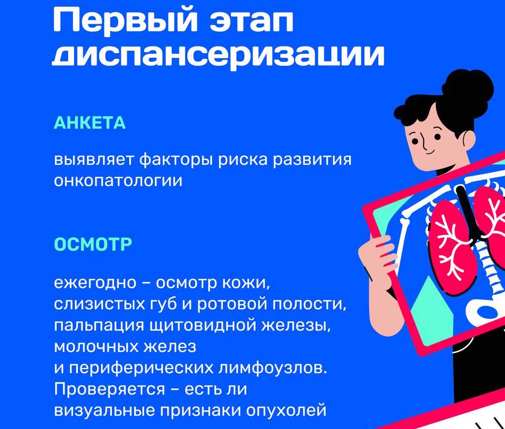 Некоторые патологии могут коснуться любого человека, даже ведущего здоровый образ жизни. И одна из таких патологий — онкологические заболевания. Для того чтобы выявить онкологию, когда еще нет симптомов, необходимо пройти диспансеризацию. Онкозаболевания, обнаруженные на ранней стадии, излечимы в 90% случаев.