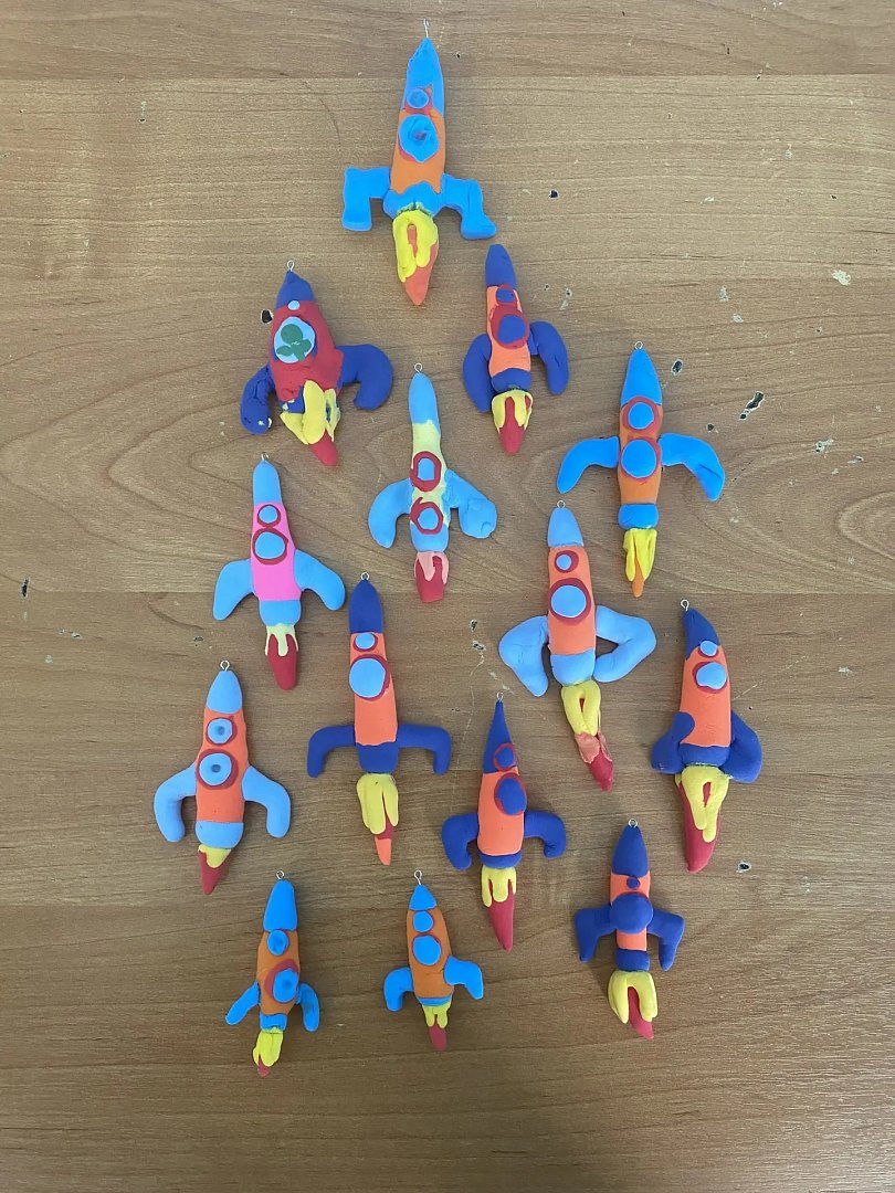 Под чутким руководством наставников юные участники творчески подошли к задаче. Ребята тщательно выбирали цвета пластилина — многие решили сделать ракеты красными, синими или серебристыми, как настоящие космические корабли, затем скатывали колбаски и шарики для корпуса, крыльев и иллюминаторов и аккуратно соединяли детали, придавая форме чёткие очертания. Каждый смог проявить индивидуальность и полет фантазии, создавая свой уникальный космический талисман.