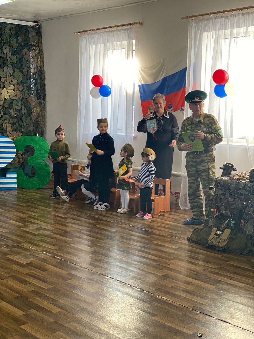 Дошколята вместе с педагогами подготовили трогательные творческие номера. Несмотря на юный возраст, ребята с особым трепетом и уважением к защитникам исполнили песни, прочитали стихотворения патриотического содержания, поздравили присутствующих мужчин и подарили им открытки, сделанные своими руками.
