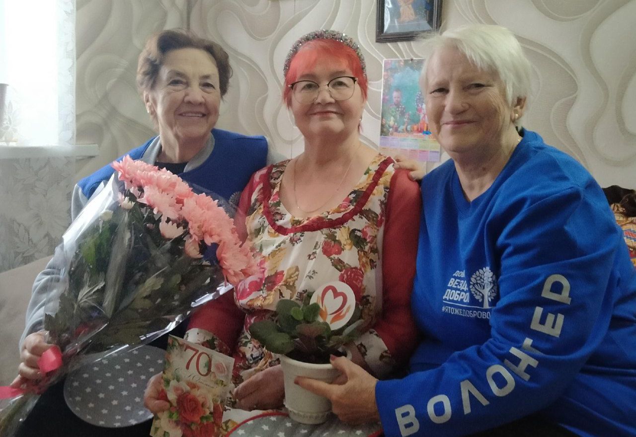 «Серебряные» волонтеры центра социального обслуживания населения Ершовского района считают своим важным делом – морально поддержать и приободрить членов семей участников СВО. На этой неделе они поздравили с 70-летним юбилеем получателя социальных услуг центра Нину Павловну Холодову, маму участника СВО.