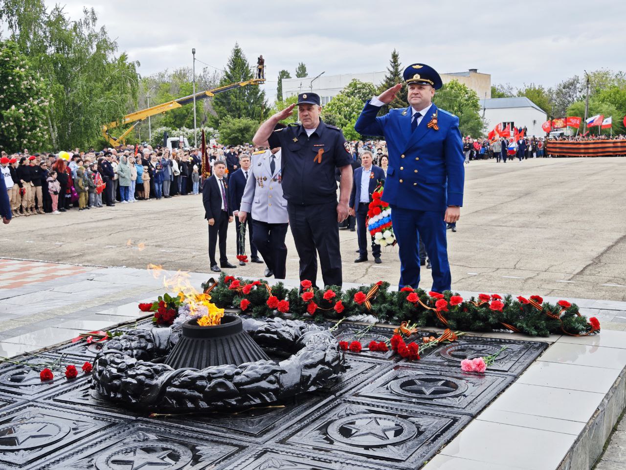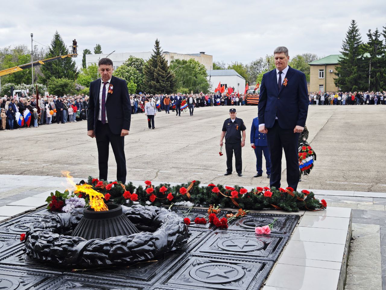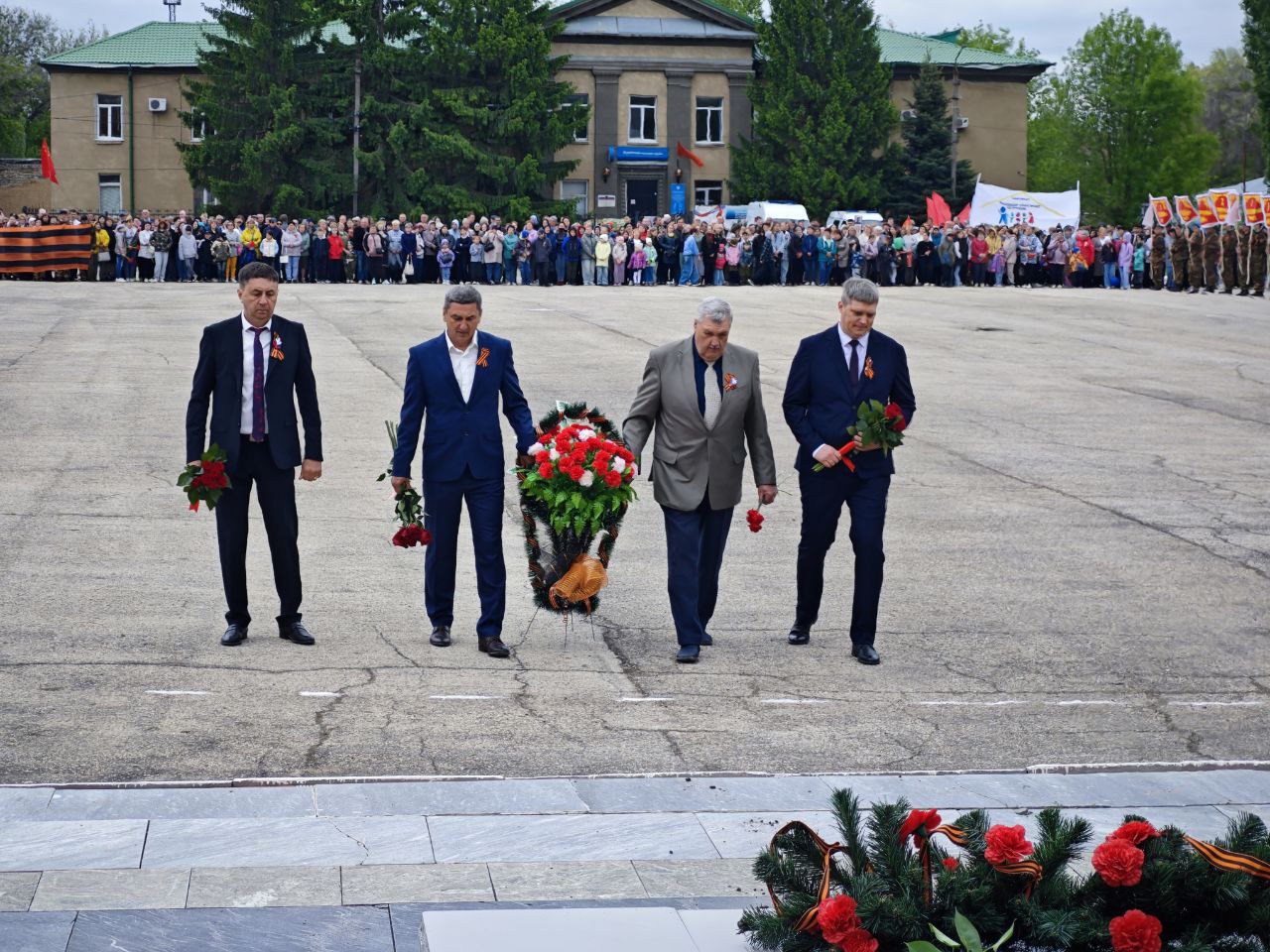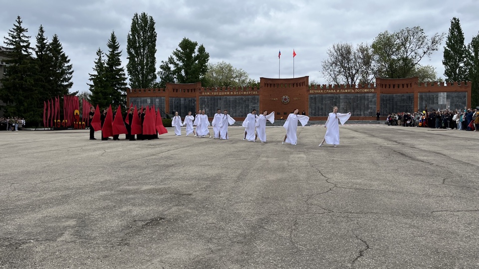 Традиционно была объявлена минута молчания в память обо всех, кто не вернулся с войны. Зрители, затаив дыхание, почтили павших героев. Затем к мемориалу «Вам, ушедшим в бессмертие, вечная слава и память потомков» были возложены венки и цветы.