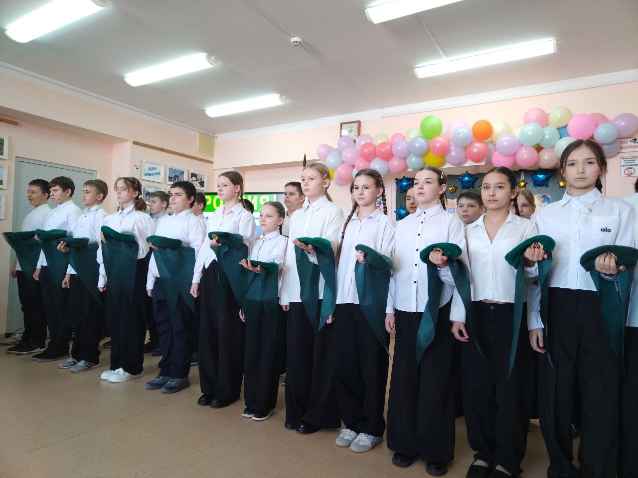 Директор школы Геннадий Лепехин зачитал приказ о принятии ребят в ряды юных друзей пограничников и поздравил новоиспеченных «бабушкинцев» с этим значимым для них событием. В ходе торжества прозвучали патриотические стихотворения и песня «А на плечах у нас зеленые погоны».