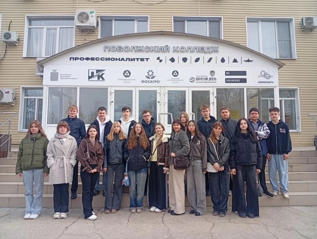 В рамках федерального проекта «Профессионалитет» обучающиеся 9Б класса школы №2 г.Ершова вместе с классным руководителем Анной Асипенко и педагогом-навигатором Айгуль Гумаровой посетили Поволжский колледж технологий и менеджмента в городе Балаково.