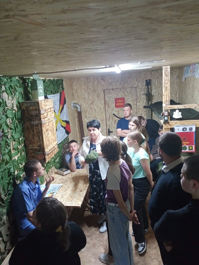 Второй зал оформлен в виде блиндажа – там есть лежак, буржуйка, стол, предметы солдатского быта, табуреты и экспонаты, привезенные из зоны СВО, чем они особо ценны. Обстановка блиндажа в полной мере передает атмосферу жизни солдат. В создании этой экспозиции принимали активное участие волонтеры, которые сами побывали в зоне боевых действий. Открытие данной экспозиции – это бесспорно важный вклад в патриотическое воспитание подрастающего поколения.
