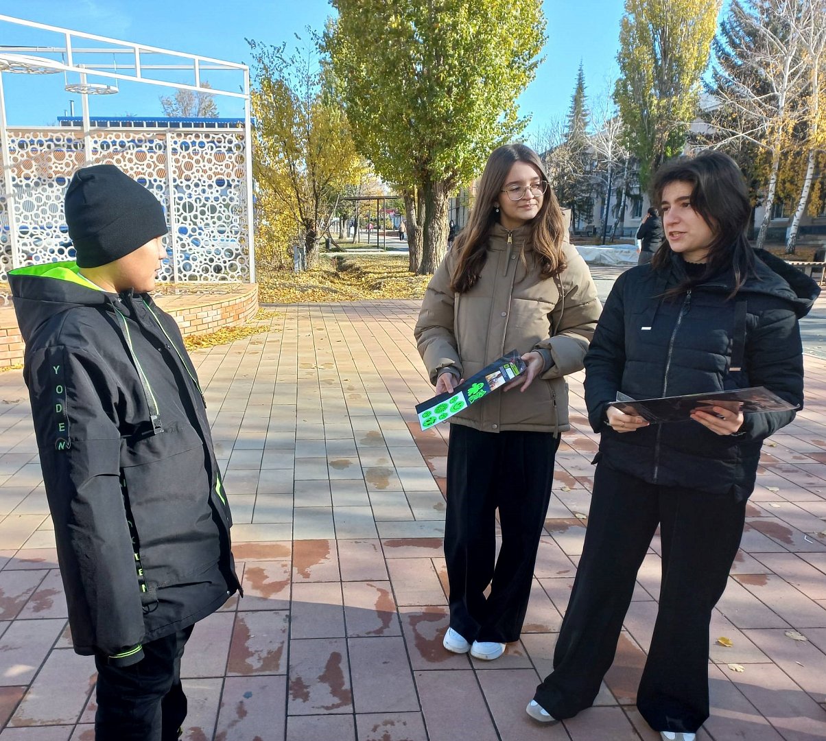 По инициативе члена Общественного совета при ОМВД России по Ершовскому району Александра Ефремова, в рамках оперативно-профилактических мероприятий «Внимание, осенние каникулы!» ученики 10 класса школы № 2 г. Ершова приняли участие в акции ОГИБДД ОМВД России по Ершовскому району «Засветись на дороге!».