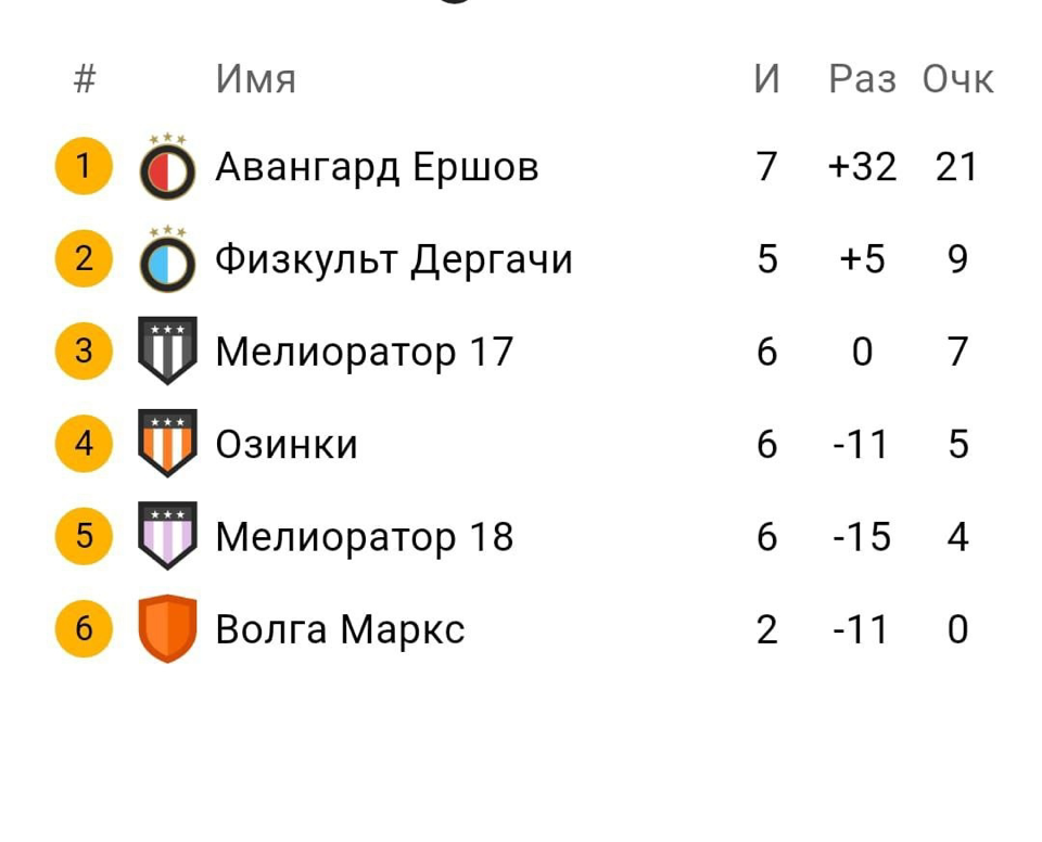 В первом матче «Авангард» со счетом 3:0 переиграл коллектив «Мелиоратор-17» (Маркс). Игроки продемонстрировали грамотную тактическую игру, уверенное владение мячом и отличную реализацию моментов. Вторая встреча против «Мелиоратора-18» (Маркс) также прошла под полным контролем ершовской команды — итоговый счет 4:0 закрепил ее статус фаворита тура.