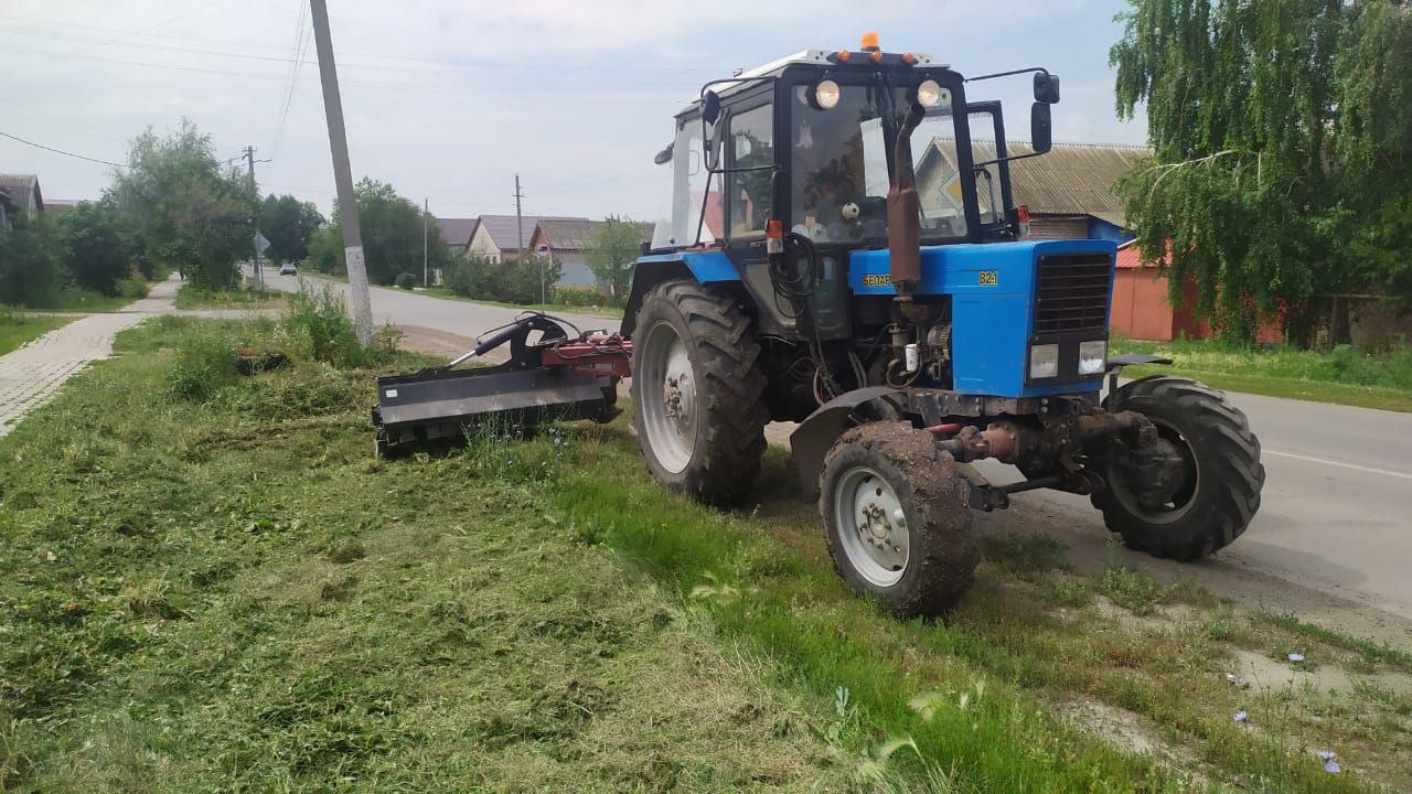 На улице Космонавтов организован вывоз строительного мусора. Кроме того, при помощи косилки МТЗ выполнен обкос обочин по улицам 27 съезда КПСС, Кутузова и Гагарина.