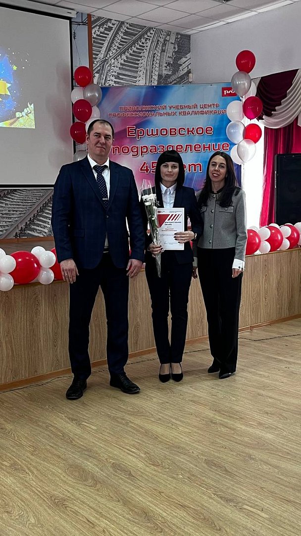 С поздравительным словом перед собравшимися выступили заместитель начальника службы управления персоналом Олеся Черникова, начальник Ершовского подразделения того периода, а сегодня преподаватель Владимир Желаев, начальник Приволжского учебного центра профессиональных квалификаций Роман Прокапчук, начальник дирекции тяги Сергей Рогов. Каждый из них отметил важность учебного центра в формировании кадрового потенциала железнодорожной отрасли и выразил признательность за подготовку профессионалов и многолетний труд сотрудникам центра.