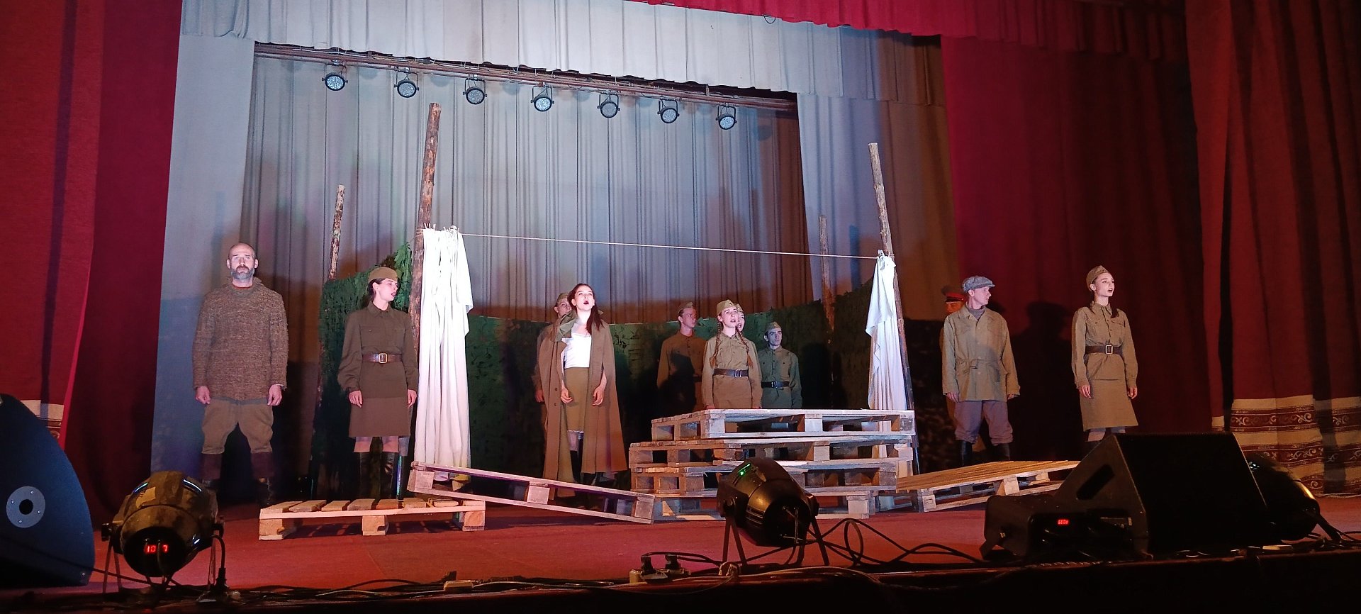 В преддверии 80-летия Великой Победы на сцене районного Дома культуры г.Ершова прошел показ спектакля, посвященного теме Великой Отечественной войны и Году защитника Отечества, в исполнении актеров Вольского драматического театра. Спектакль, поставленный по известному произведению советского классика Бориса Васильева, посвящен подвигу женщин-военнослужащих зенитчиц, вступивших в неравную схватку с отрядом немецких диверсантов в мае 1942 года, а также памяти миллионов жизней, унесенных войной.