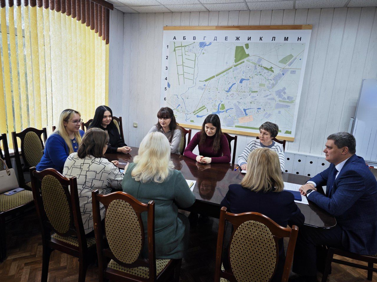 На встрече присутствовали руководитель аппарата администрации Юлия Дорохова, заместитель начальника отдела образования Марина Киенко, заведующий информационно-методическим центром Ирина Аль Токтли, председатель районной профсоюзной организации работников народного образования и науки Светлана Рящикова.