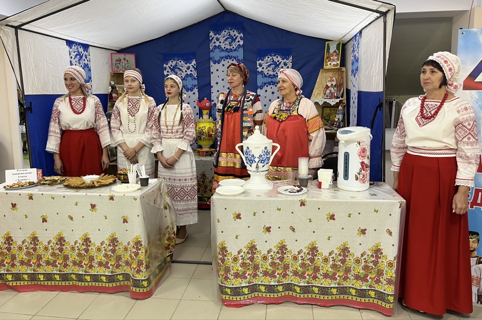 В фойе РДК была организована выставка национальных блюд и костюмов. Гости могли увидеть яркие наряды и попробовать традиционные угощения разных народов.