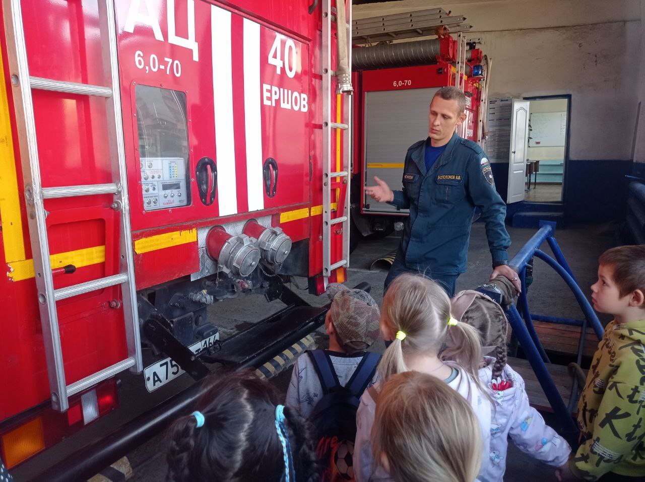 Воспитанники детского сада №1 «Тополек» г.Ершова совершили маленькое, но очень увлекательное и незабываемое путешествие в Пожарную часть №40. Это мероприятие вызвало огромный интерес у маленьких экскурсантов, ведь трудно отыскать ребенка, который равнодушно отнесется к реву пожарной машины. Даже мельком посмотреть на несущихся куда-то на помощь пожарных – уже большая удача, а рассмотреть настоящую пожарную машину, оборудование, защитные костюмы, особенно интересно детям любого возраста.