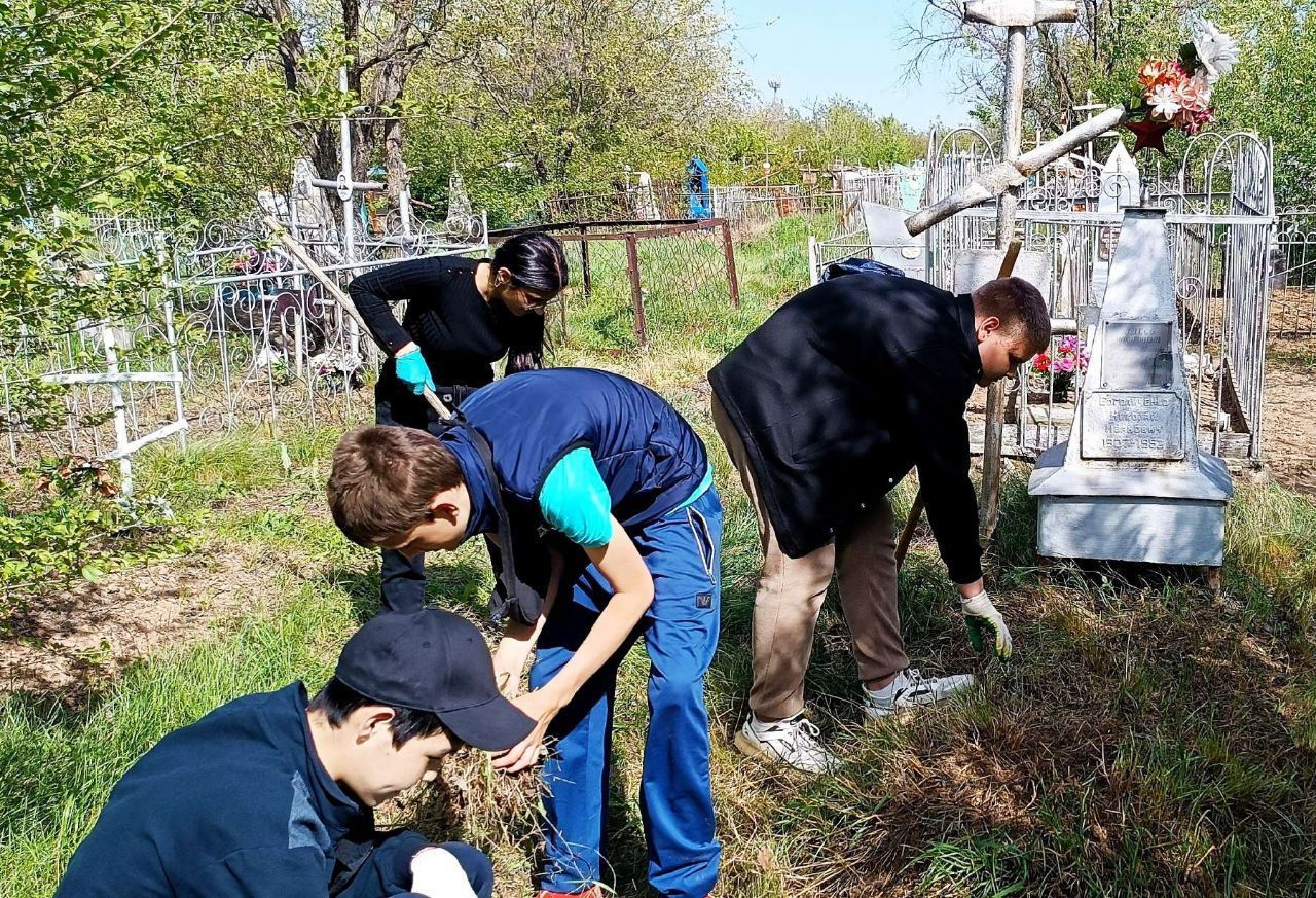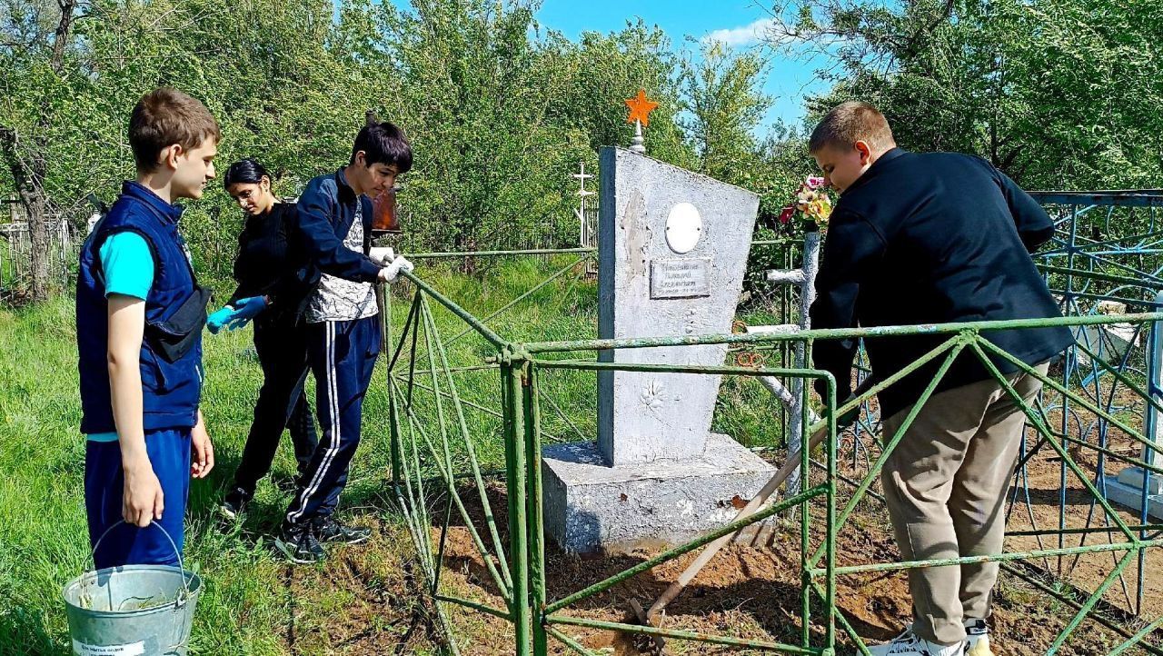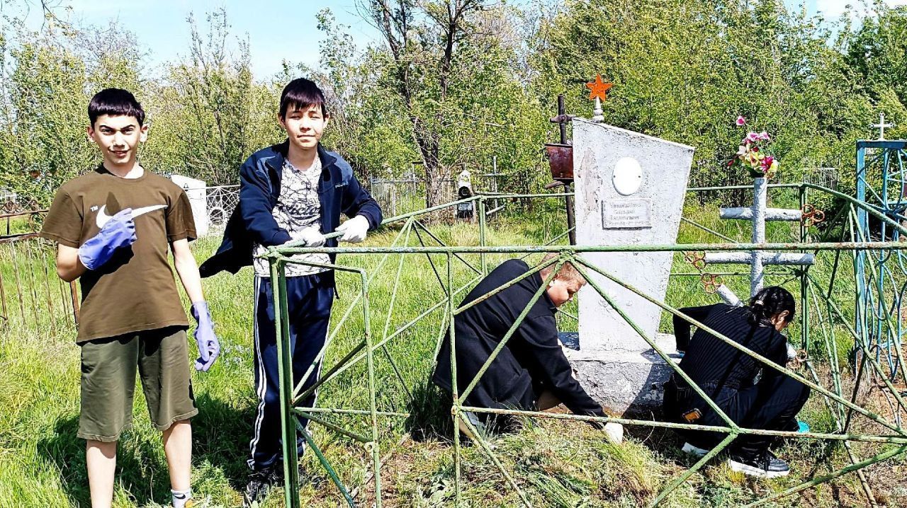 В преддверии Дня Великой Победы активисты Движения Первых школы №4 г. Ершова привели в порядок могилы ветеранов и участников Великой Отечественной войны. Ребята облагородили могилы советских солдат на старом кладбище: убрали мусор, траву и ветки.