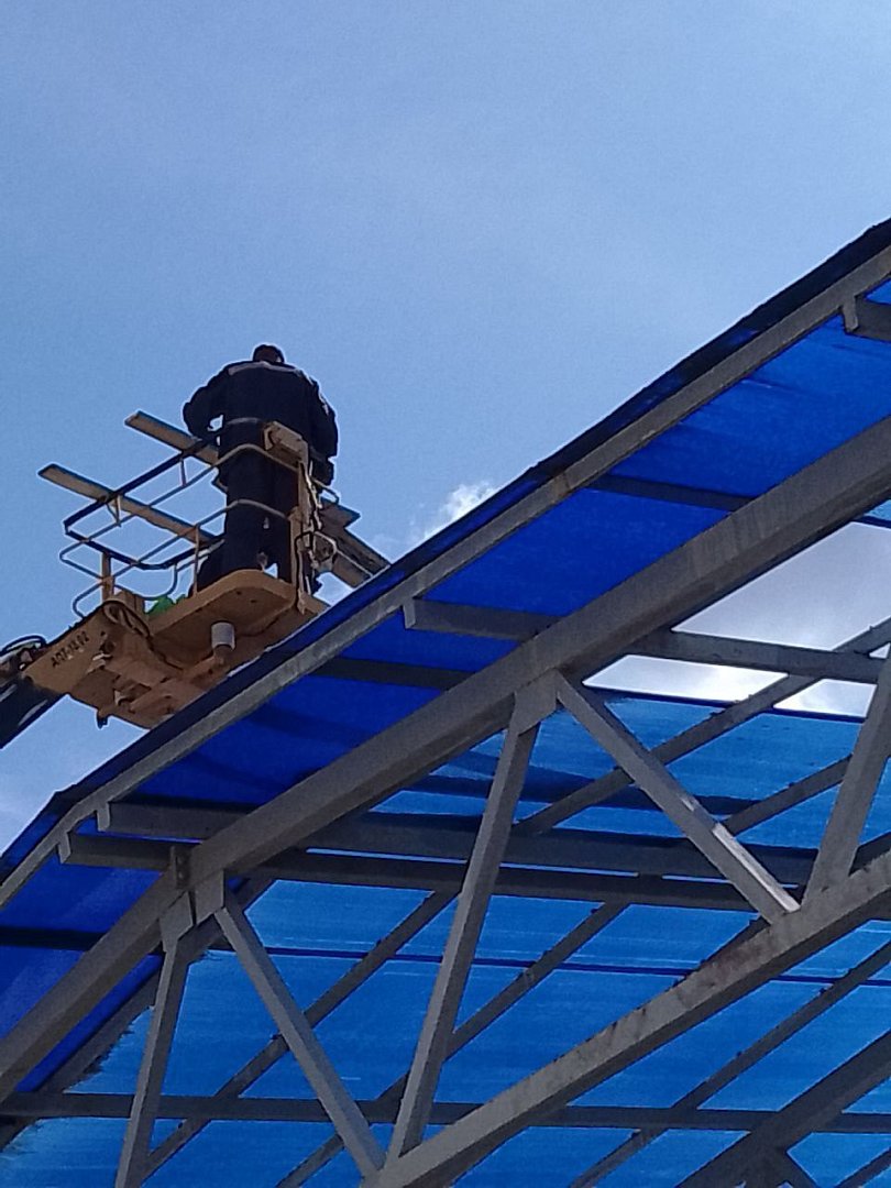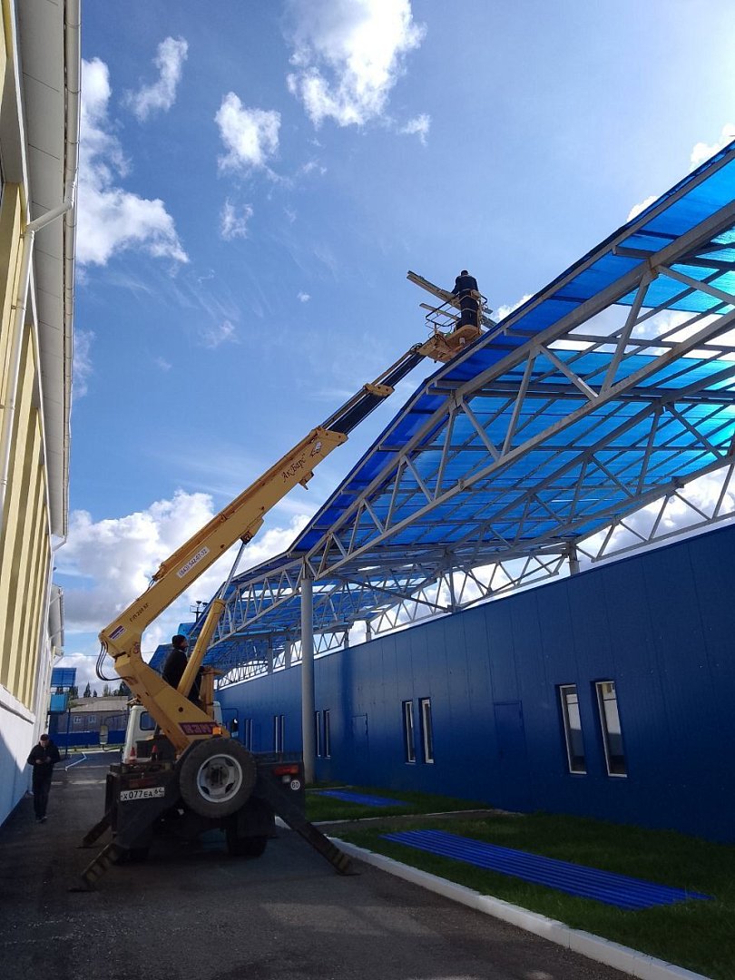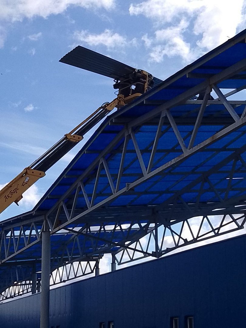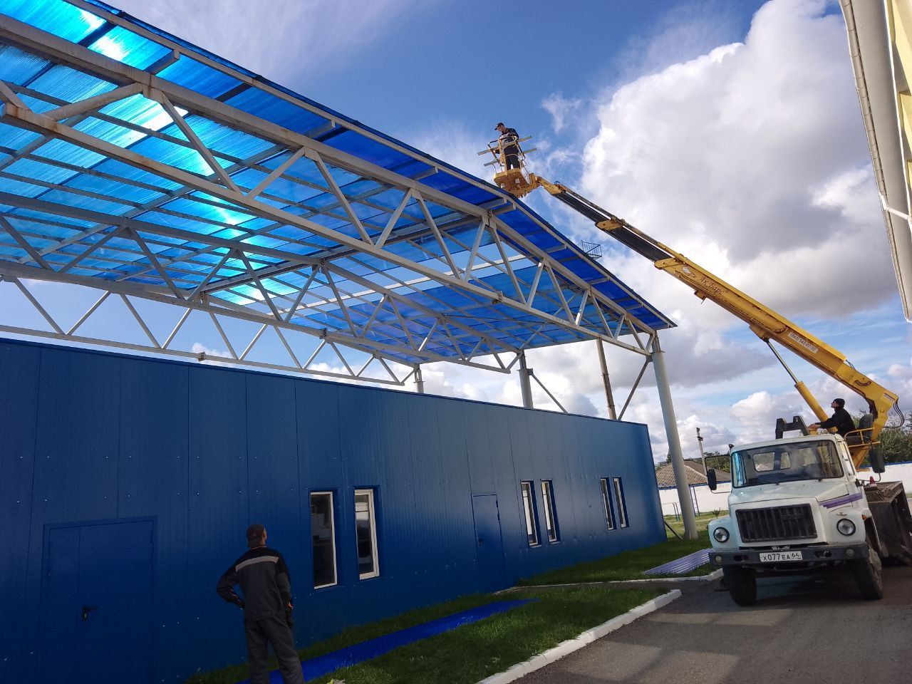 Во время ураганных ветров, пронесшихся над нашим Ершовом этим летом, пострадал навес над трибунами на стадионе «Юность». Появилась необходимость в восстановлении конструкции.