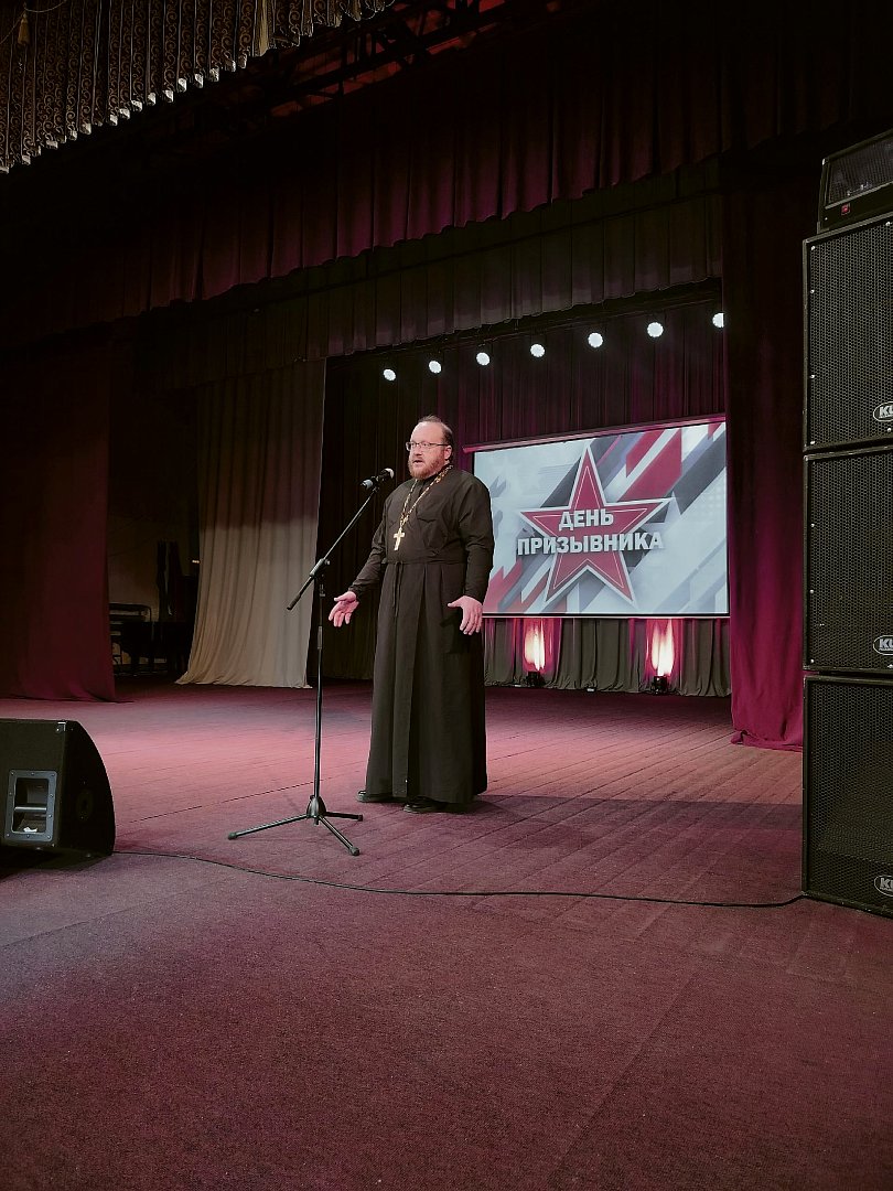Духовную поддержку будущим воинам оказал настоятель Свято-Никольского храма отец Кирилл Бауков. В своем напутственном слове он призвал ребят сохранять человеческое достоинство и больше заниматься спортом.