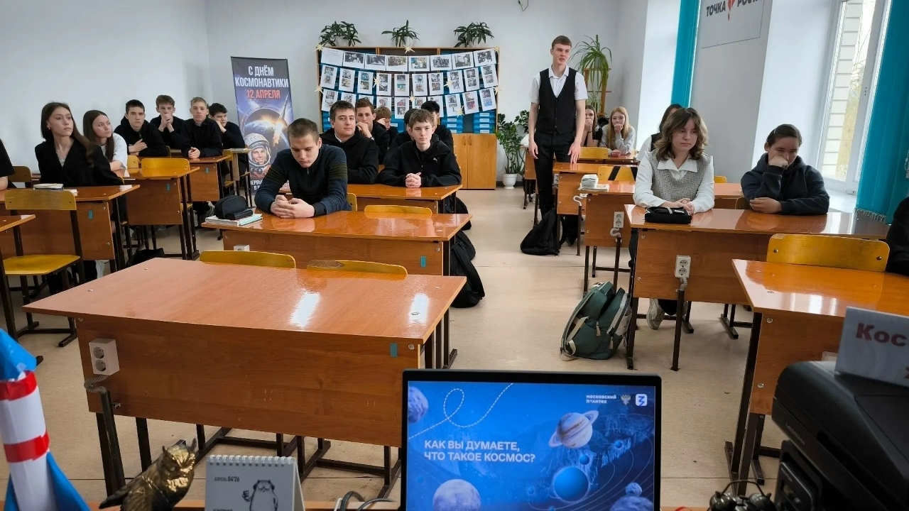В школе №1 для учащихся 8–11 классов прошел классный час «Космический путь России: исследуя бесконечность» при поддержке «Российского детско-юношеского центра» и общества «Знание». Школьники узнали об этапах развития космонавтики — от запуска первого спутника до полета Гагарина, а также о программах «Восток», «Восход», «Салют», «Алмаз» и станции «Мир».