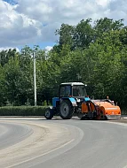 Сегодня, в тестовом режиме, машина вышла на улицы города. Аппарат представляет собой прицепное устройство к трактору. Он предназначен для подметания и очистки дорог, тротуаров и площадей от пыли и мусора.