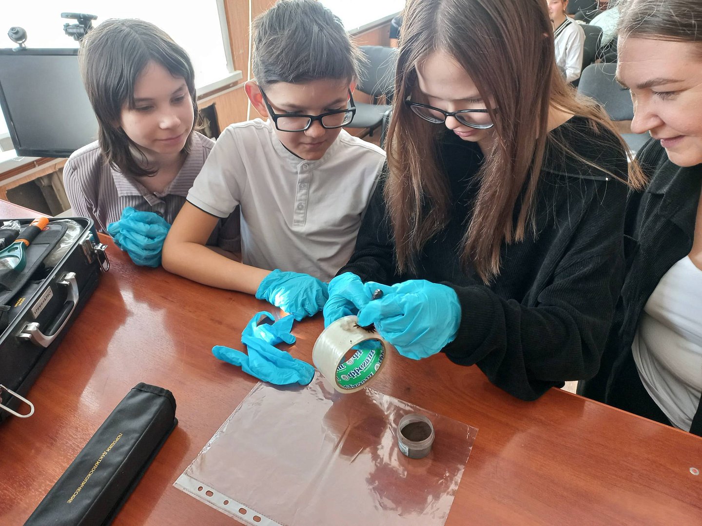 Старший эксперт ЭКГ ОМВД России по Ершовскому району майор полиции Денис Горюнов рассказал им о видах и способах криминалистических исследований, познакомил с содержанием криминалистического чемоданчика и способами фиксация и изъятия следов с места преступления.