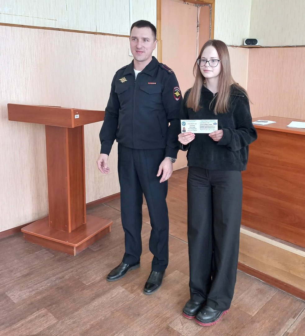 Заместитель начальника - начальник отделения по работе с личным составом ОМВД России по Ершовскому району подполковник полиции Шамиль Сайфетдинов и председатель Общественного совета при ОМВД России по Ершовскому району торжественно вручили ребятам удостоверения членов отряда «Юный друг полиции» и поздравили со вступлением в ряды общественного движения правоохранительной направленности.