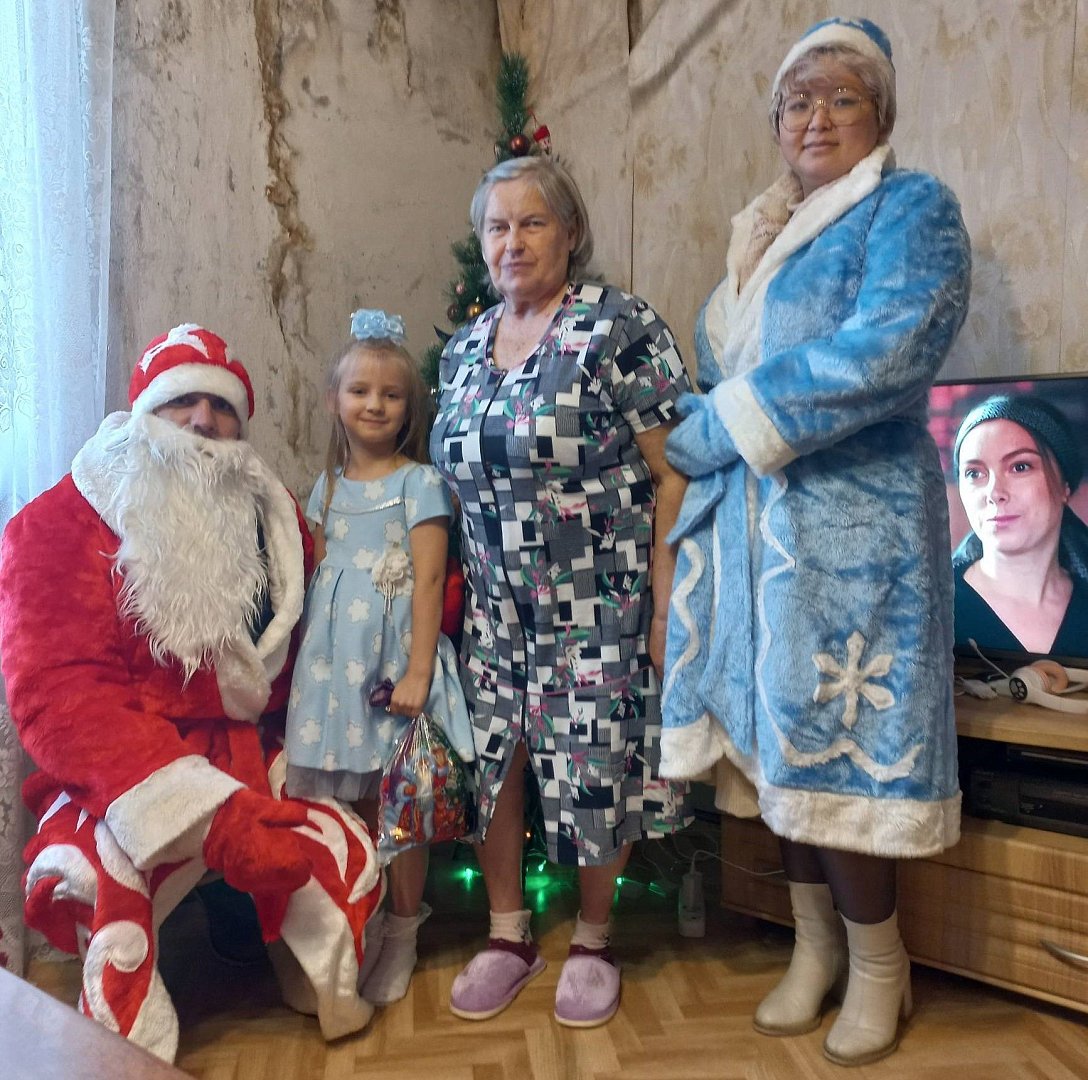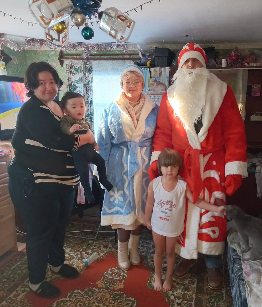 В рамках акции старший инспектор ПДН майор полиции Елена Пильгун с Дедом Морозом - председателем Общественного совета при ОМВД России по Ершовскому району Владимиром Кусиковым и Снегурочкой – врио старшего инженера ГИТСиЗИ сержантом полиции Динарой Плетневой поздравили детей, воспитывающихся в семьях, находящихся в трудной жизненной ситуации, с наступающим Новым годом.