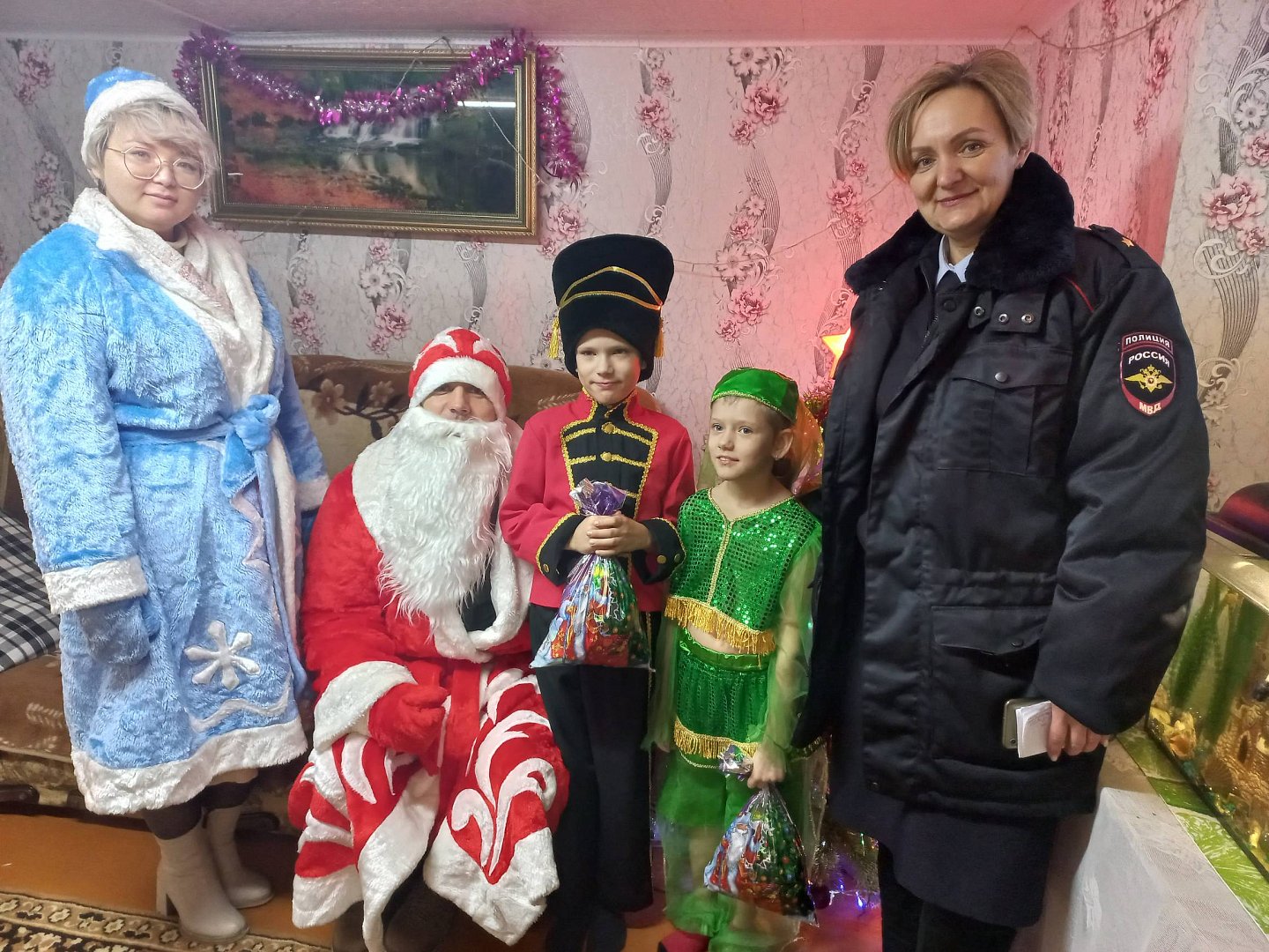 Дети с нетерпением ждали визита сказочных гостей. Сотрудники полиции приехали к ребятам со сладкими подарками. Дед Мороз со Снегурочкой с большим интересом послушали стихи про Новый год, которые ребята подготовили специально к празднику. Родителям несовершеннолетних сотрудники полиции напомнили об ответственности за воспитание детей и усилении контроля за ними во время зимних каникул.