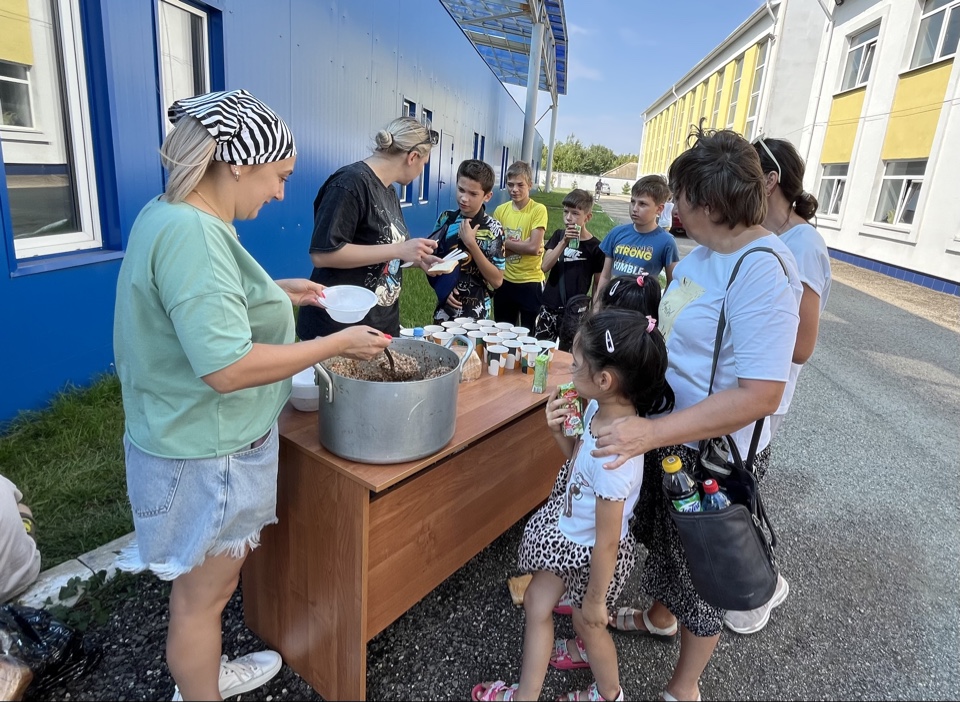 Праздник сопровождался угощением — всем участникам раздали мороженое, лимонад, соки и вкусную гречневую кашу с компотом, которую с удовольствием ели и взрослые, и дети.