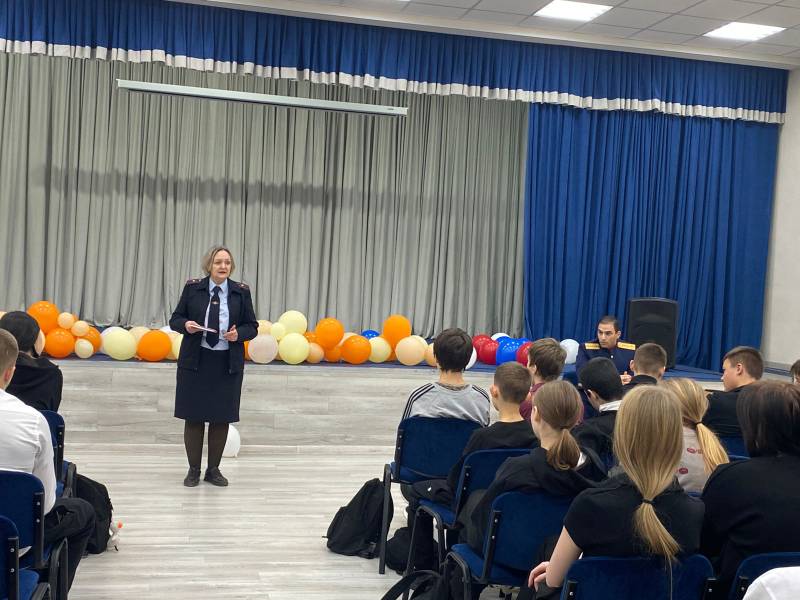 Представитель Следственного комитета в своем выступлении сосредоточил внимание школьников на видах преступлений, за которые законом установлена уголовная ответственность для несовершеннолетних. Он привел примеры из своей практики работы с несовершеннолетними, совершившими преступления.