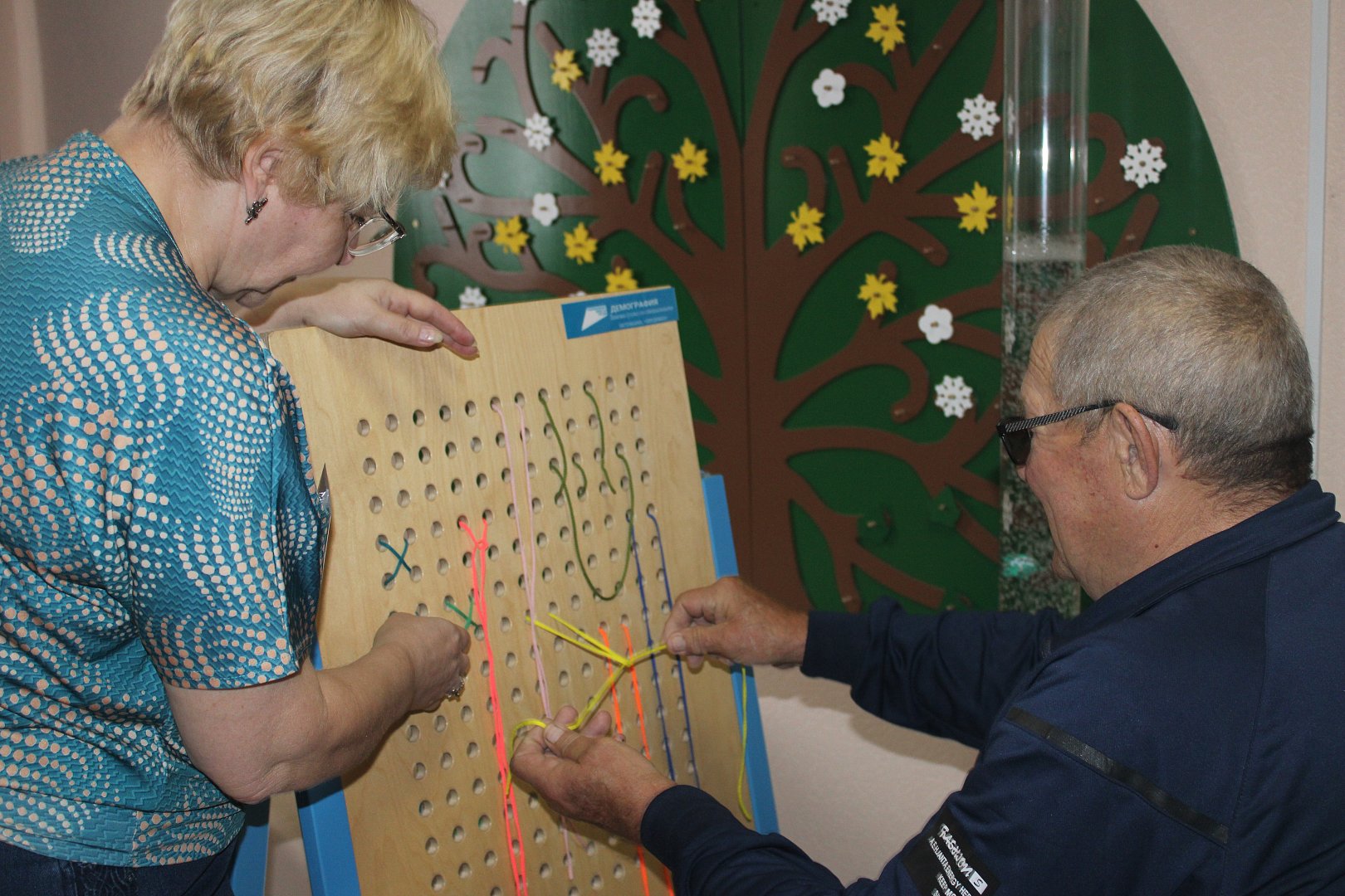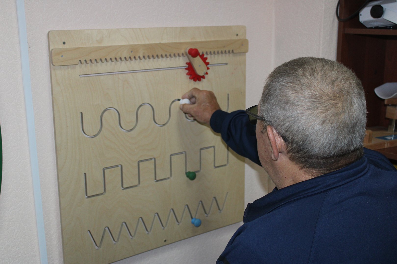 Участники занятия использовали модуль для восстановления и развития мелкой моторики. Также использовалась пескотерапия – рисование песком позволяет стимулировать тактильную чувствительность, снимает эмоциональное напряжение и улучшает настроение. Технология «Шаг за шагом» направлена на реабилитацию и абилитацию граждан, имеющих возрастные изменения, а также после травм, инсультов.