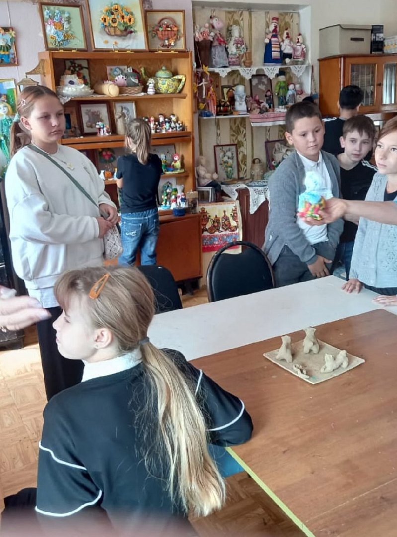 Также школьники побывали в народной мастерской декоративно-прикладной студии «Жар птица», где познакомились с работами ее руководителя Елены Долматовой.