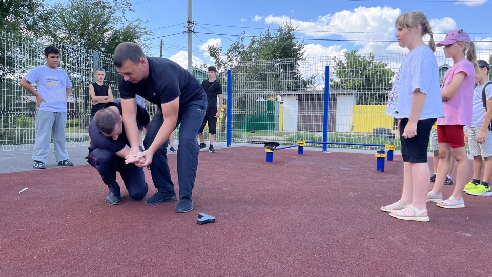 Особый интерес у участников вызвал мастер-класс по приемам самообороны, который провел инспектор-кинолог ОМВД России по Ершовскому району, старший лейтенант полиции Андрей Житинский.