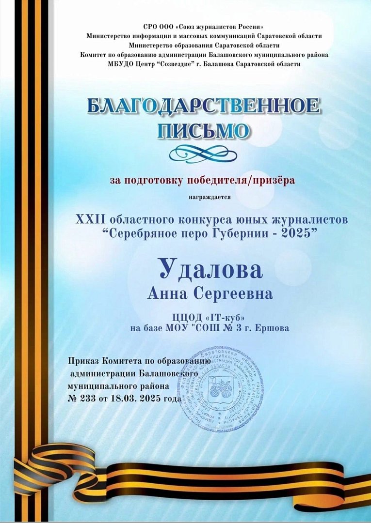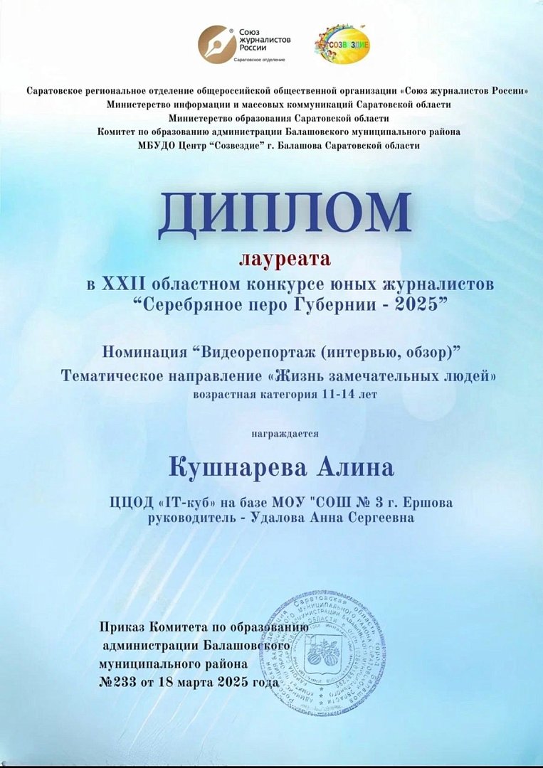Талант юных ершовских журналисток по достоинству оценили на престижном конкурсе «Серебряное перо губернии»