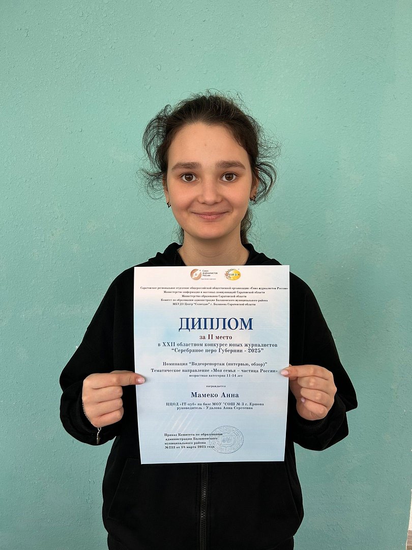 Анна Мамеко создала видео тематического направления «Моя семья - частица России» и стала дипломантом II степени.