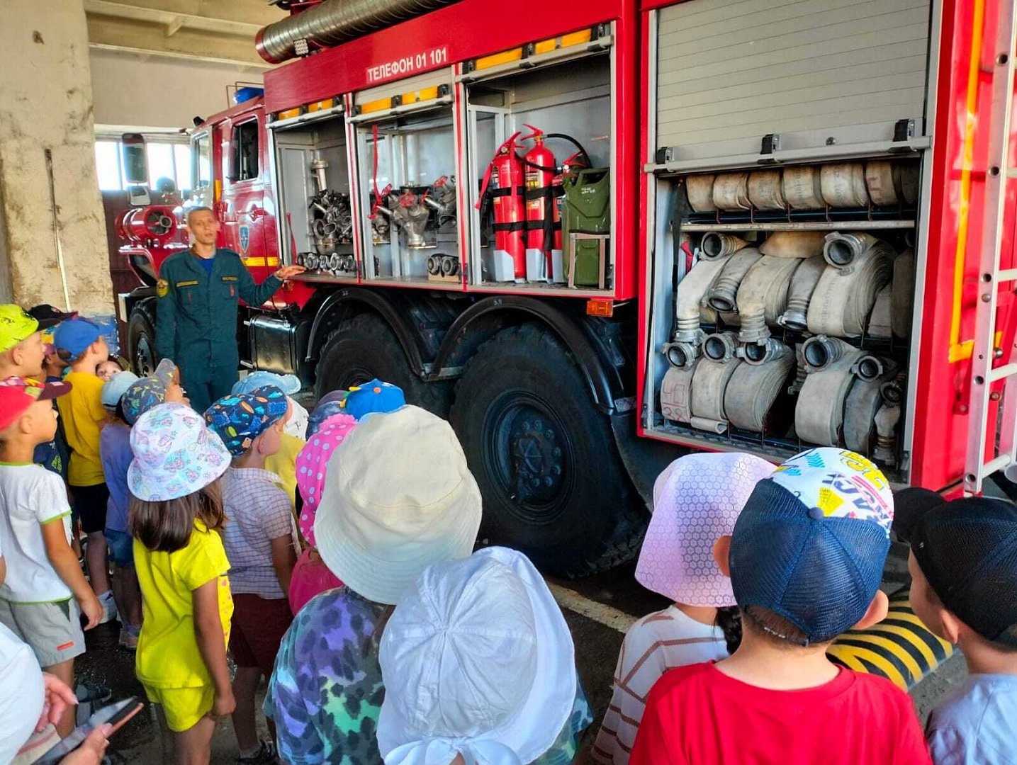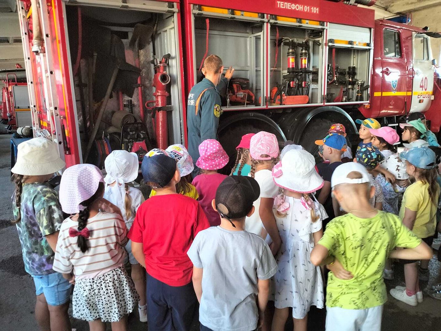 Маленькие экскурсанты с неподдельным интересом слушали рассказ пожарных, задавали много вопросов и с восторгом наблюдали за специальной техникой и экипировкой пожарных.