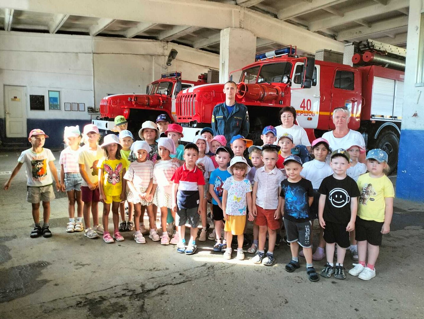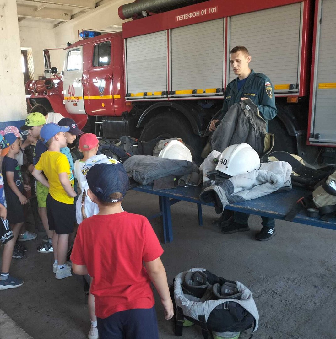 Воспитанники детского сада №3 «Звездочка» г.Ершова вместе с воспитателями совершили увлекательную экскурсию в Пожарную часть №40.