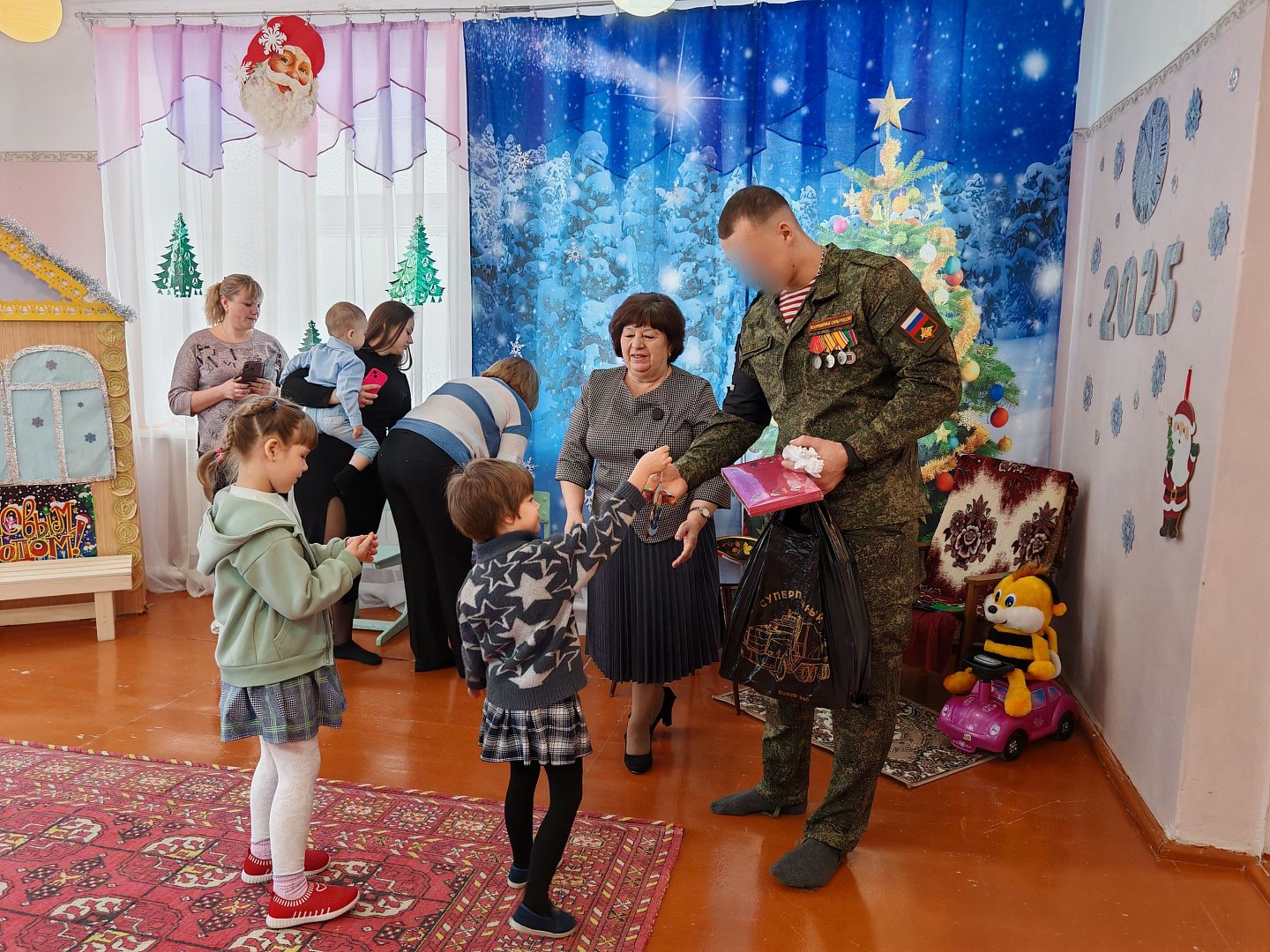 В последние дни уходящего года в детский сад пос.Прудовой Ершовского района пришли необычные гости. Воспитанников детсада и коллектив педагогов навестил участник специальной военной операции Алексей М. (позывной «Добрый») вместе со своей семьей.