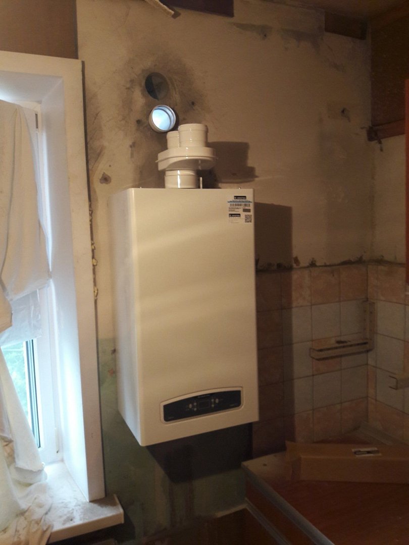 На сегодняшней день проведены работы по установке газовых котлов и сверлению воздухозаборных и дымоотводящих отверстий. В ближайшее время подрядчик приступит к монтажу дымоходов и газопровода.