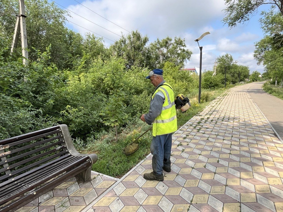 Для более эффективного ухода за зелеными зонами покос травы также был проведен трактором МТЗ с косилкой на улицах Ленина, Ворошилова, Урицкого и Горького. Продолжается текущее обслуживание фонтанов, расположенных на улице Интернациональной. Кроме того, выполнено грейдирование дороги по улице Пугачевской.