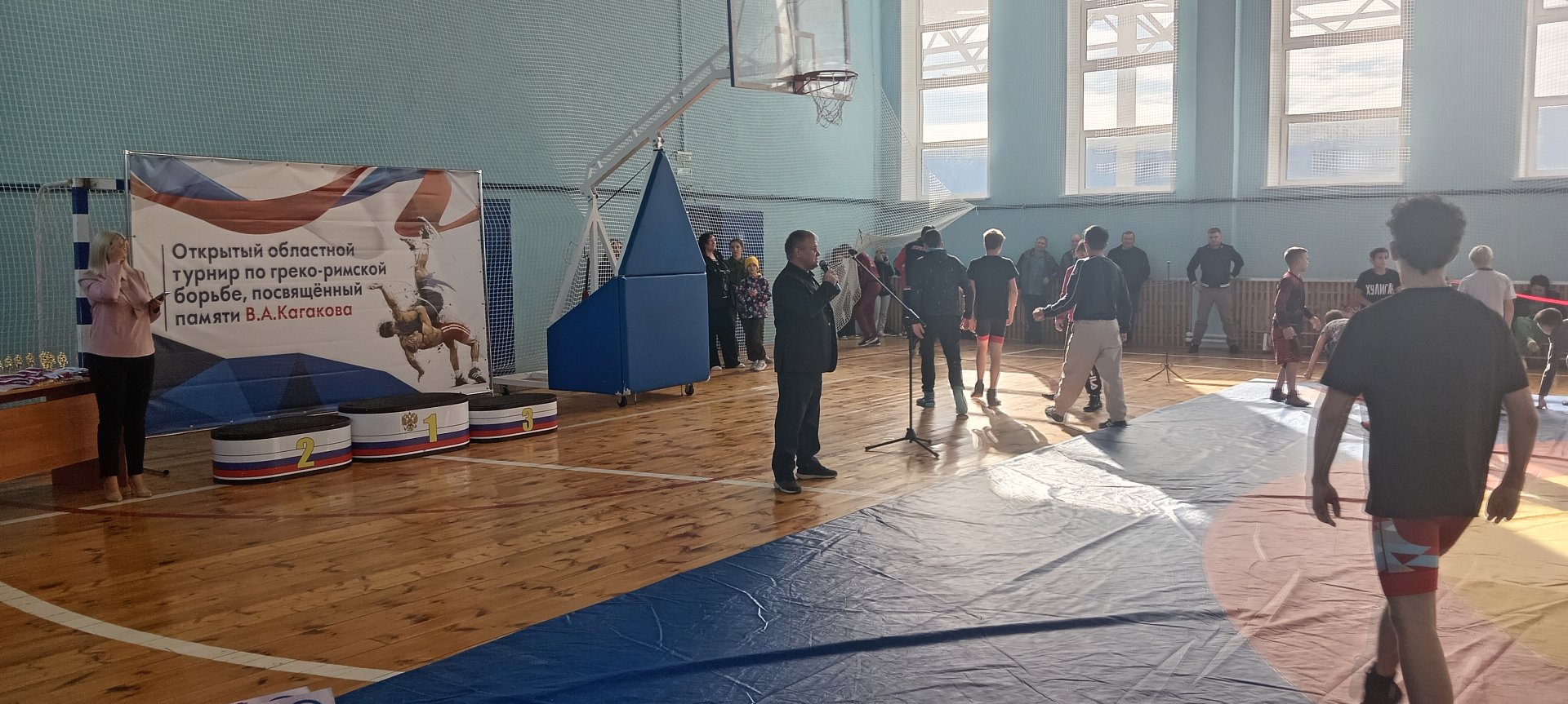 На церемонии открытия спортсменов поприветствовала директор спортивной школы города Ершова Наталья Захарова: «Ребята, желаю вам всем удачи! Главное, чтобы сегодня вы проявили все свои навыки и умения. Это будет еще один вклад в копилку ваших спортивных достижений. Спасибо тренерам за старания научить, помочь стать сильнее, ловчее и идти к успеху. Всем удачи, и пусть победит сильнейший!». Далее последовала минута молчания. После нее коллега Кагакова В.А., Анатолий Горбунов, ветеран спорта, поделился теплыми воспоминаниями о Кагакове В.А. и его достижениях.