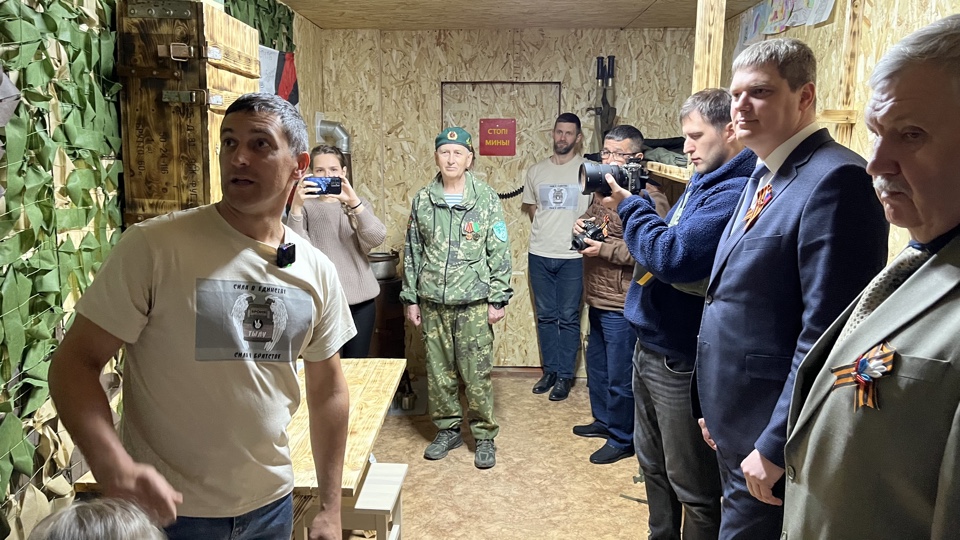 Для гостей была проведена экскурсия, которую подготовила хранитель музейных ценностей Елена Коровяковская. Она подробно рассказала о представленных экспонатах, особое внимание уделив уникальной инсталляции — воссозданному тыловому блиндажу времен специальной военной операции. Интерьер блиндажа — от деревянных кроватей и печки до предметов солдатского быта — передает атмосферу жизни бойцов в условиях тыла, вдали от линии фронта.