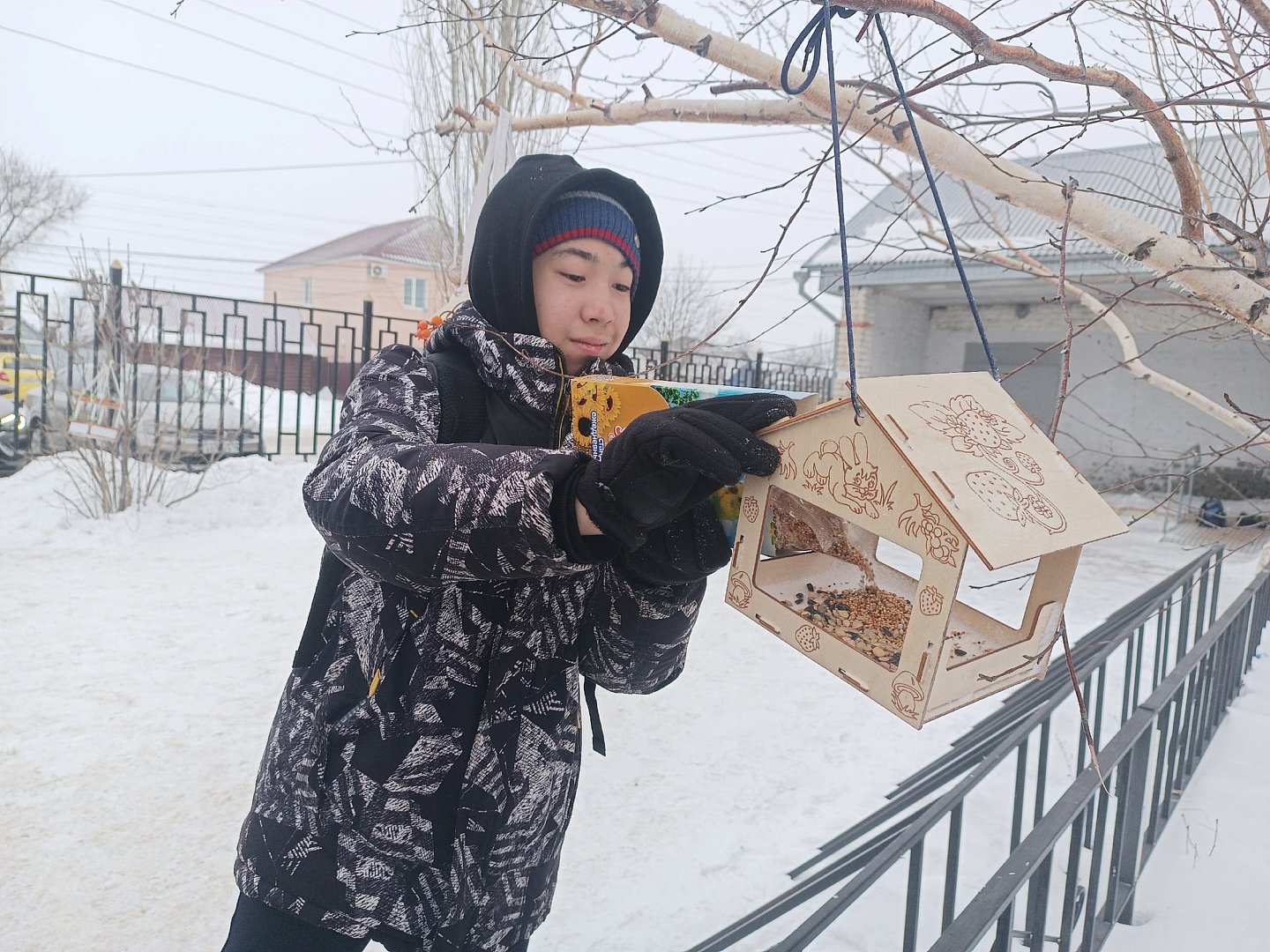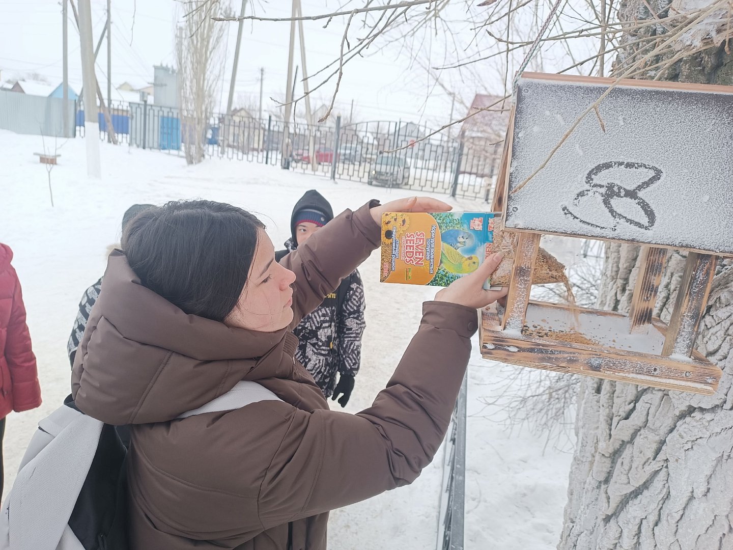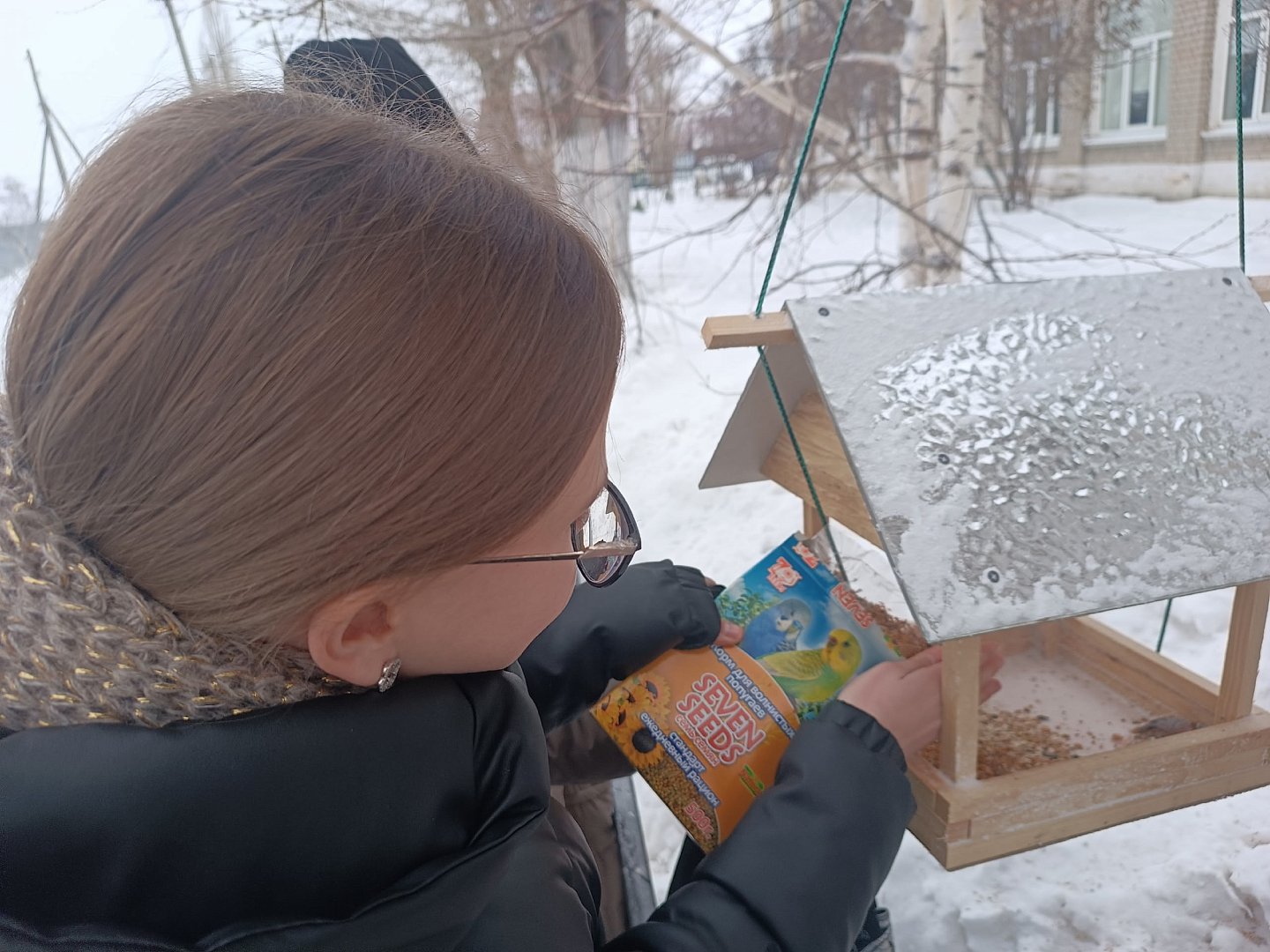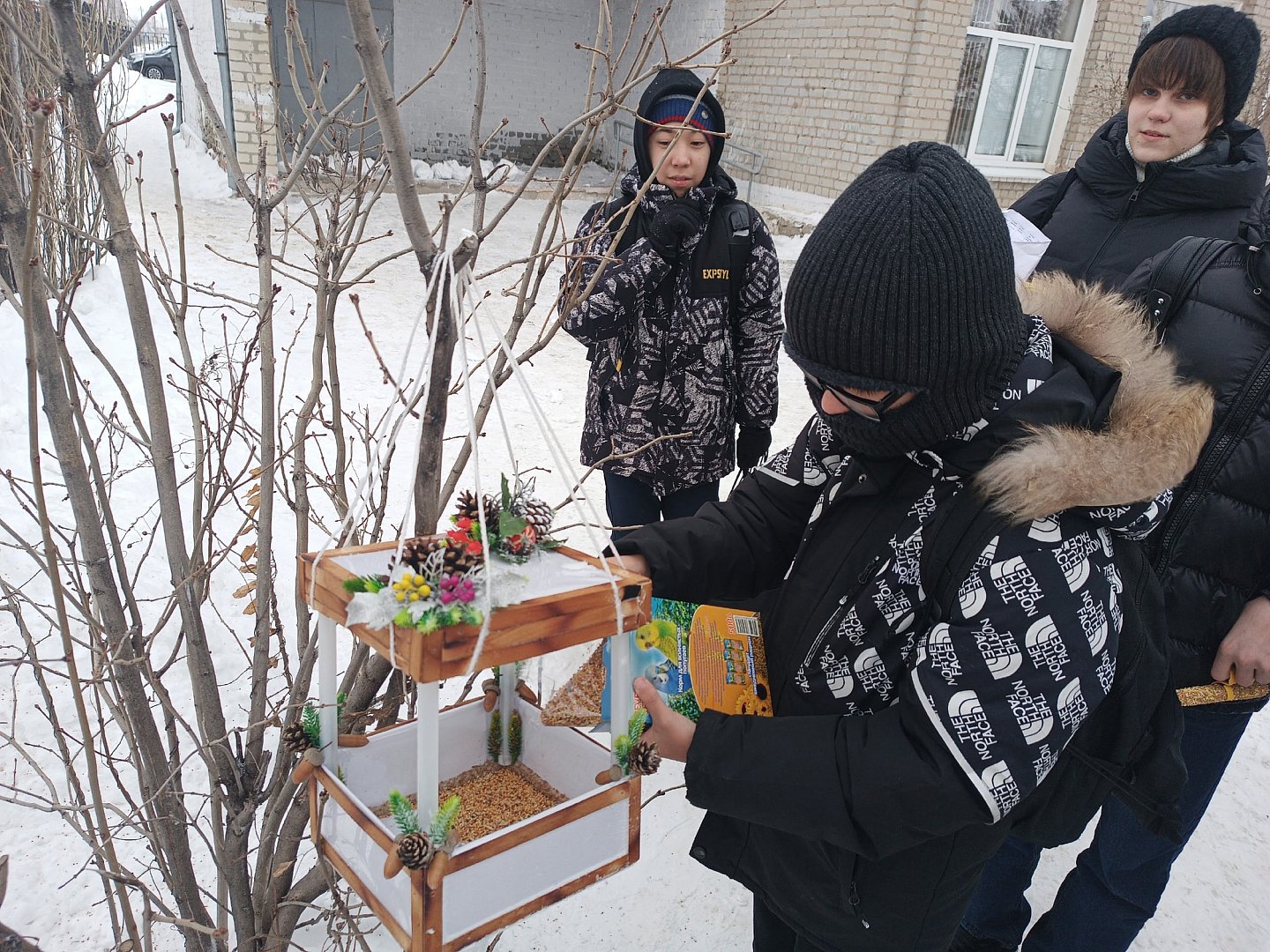 Ребята организовали регулярный подкорм, чтобы птицы могли рассчитывать на помощь каждый день. В кормушки кладут несолёные семечки подсолнечника, неочищенные зёрна проса, дроблёную кукурузу.