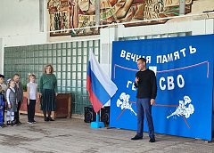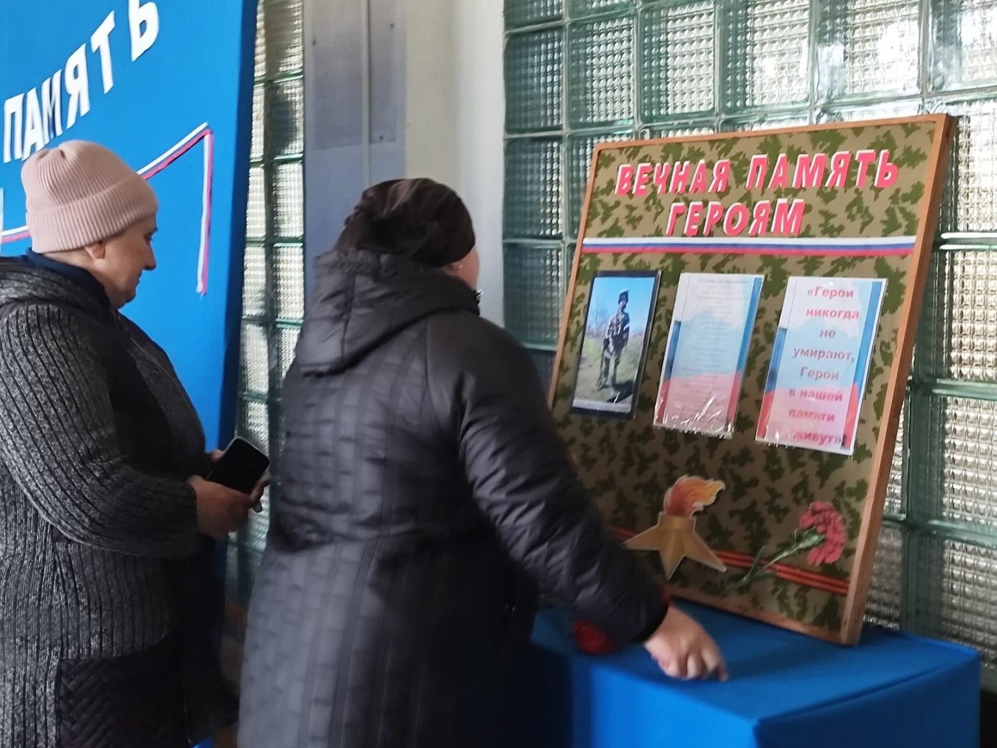 В память о герое и обо всех, кто погиб при исполнении воинского долга, была объявлена минута молчания. Мероприятие завершилось возложением цветов к памятному стенду.