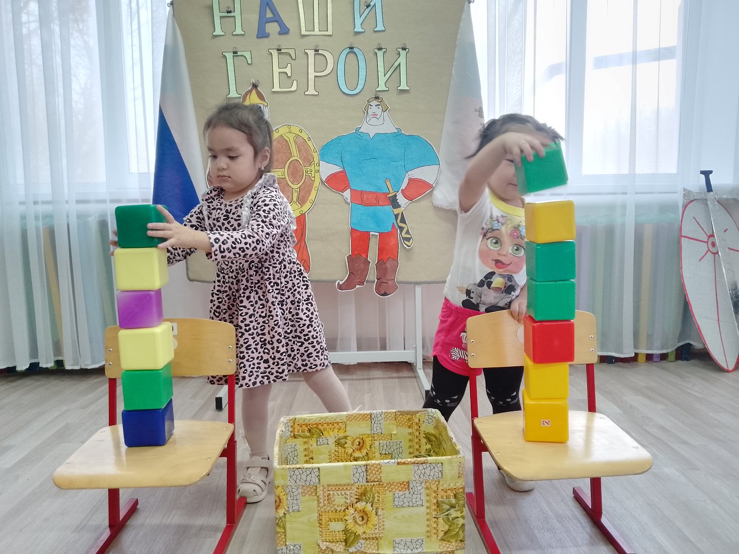 Праздник начался с гимна Российской Федерации. Дети познакомились с историей памятной даты, узнали, кто такие Герои Отечества, какие существуют государственные награды, а также услышали рассказы о героях прошлого и настоящего. Адриана Ходзицкая в честь праздника исполнила песню про Россию, Дмитрий Ерошевич рассказал стихотворение "Защитники Отечества родного". Ребята обсудили, как можно проявить героизм в повседневной жизни и кто такие спасатели - современные герои. Во время игры проявляли ловкость, знания, умения, которыми обладают герои.