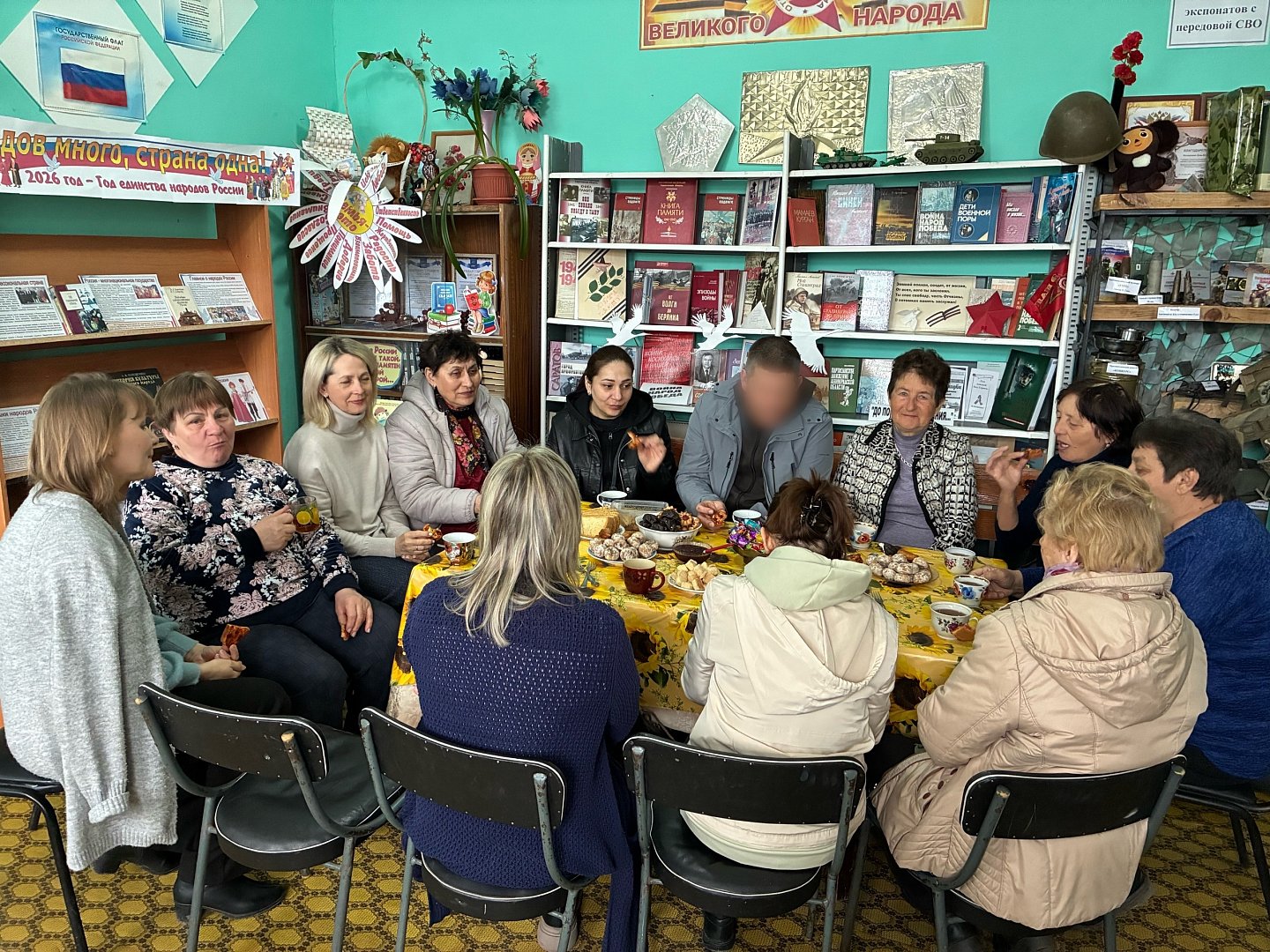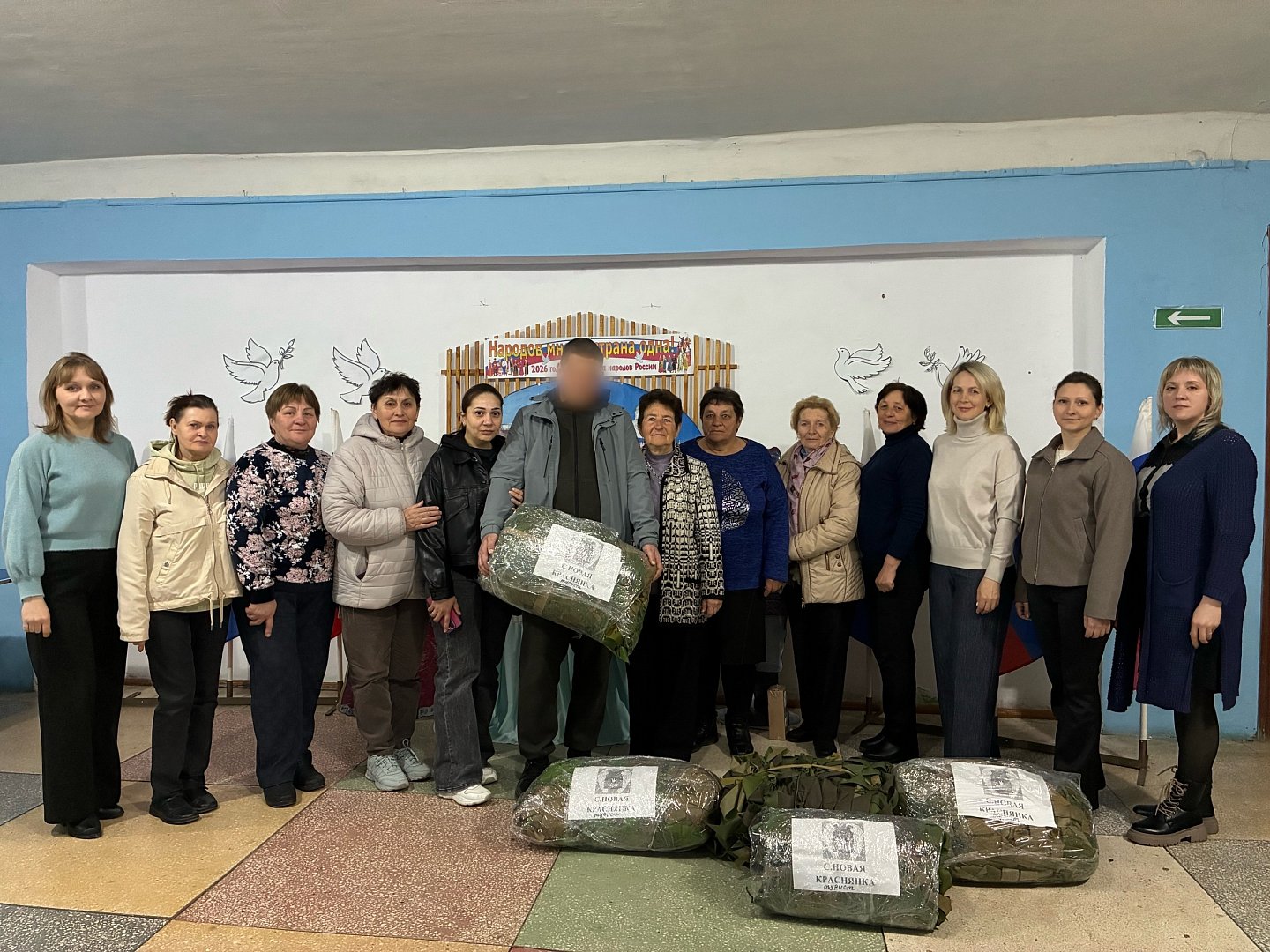 В СДК с. Новая Краснянка Ершовского района состоялась трогательная встреча женщин, участвующих в плетении маскировочных сетей, с односельчанином — бойцом СВО.