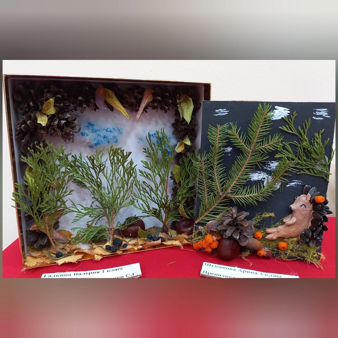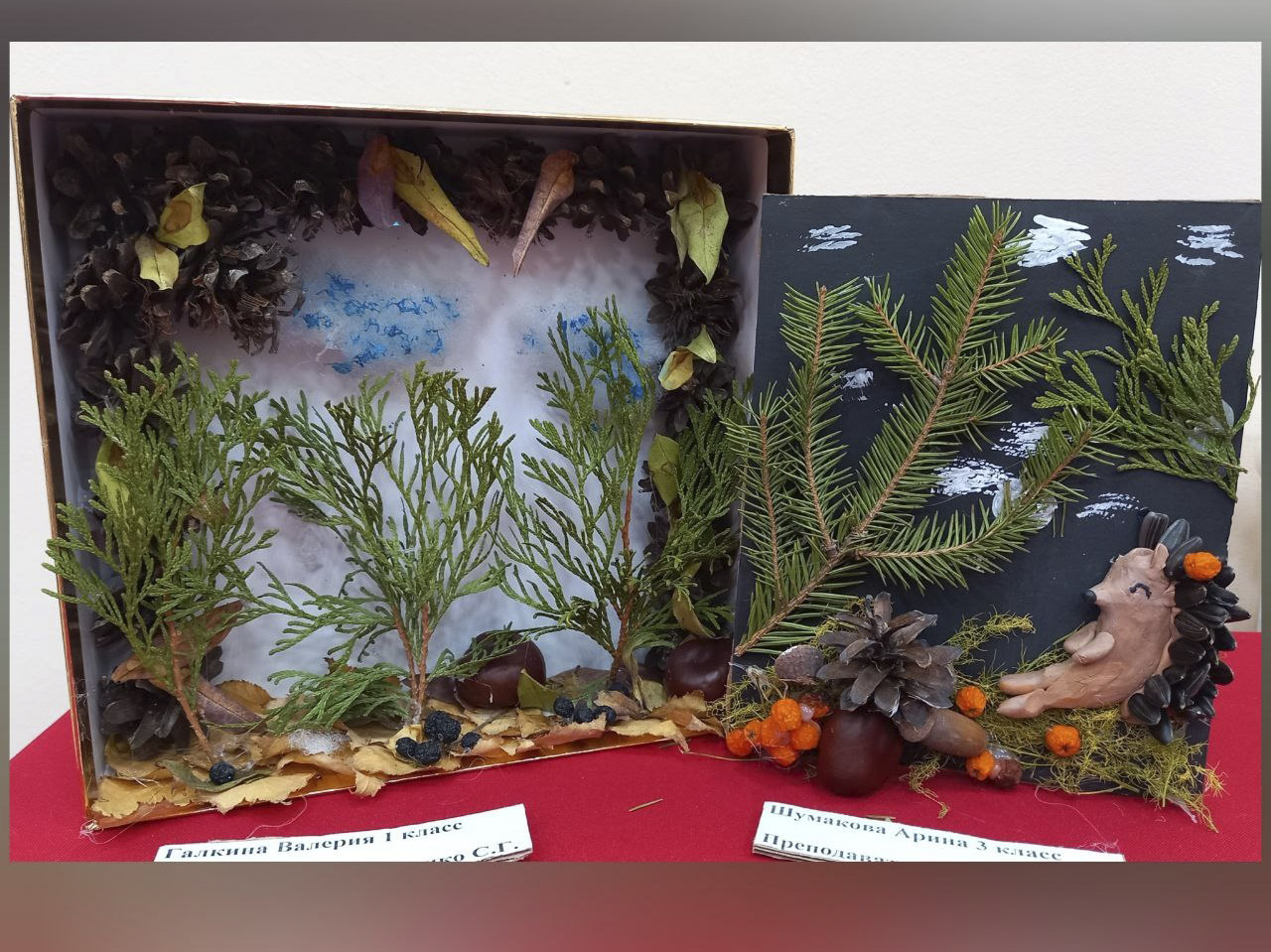 Природные материалы — дерево, листья, шишки, семена — послужили основой для оригинальных творческих работ, в которых естественная красота материала гармонично сочеталась с авторским замыслом. Каждое изделие стало гимном природе и детской фантазии.